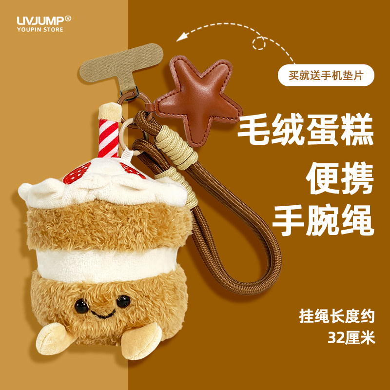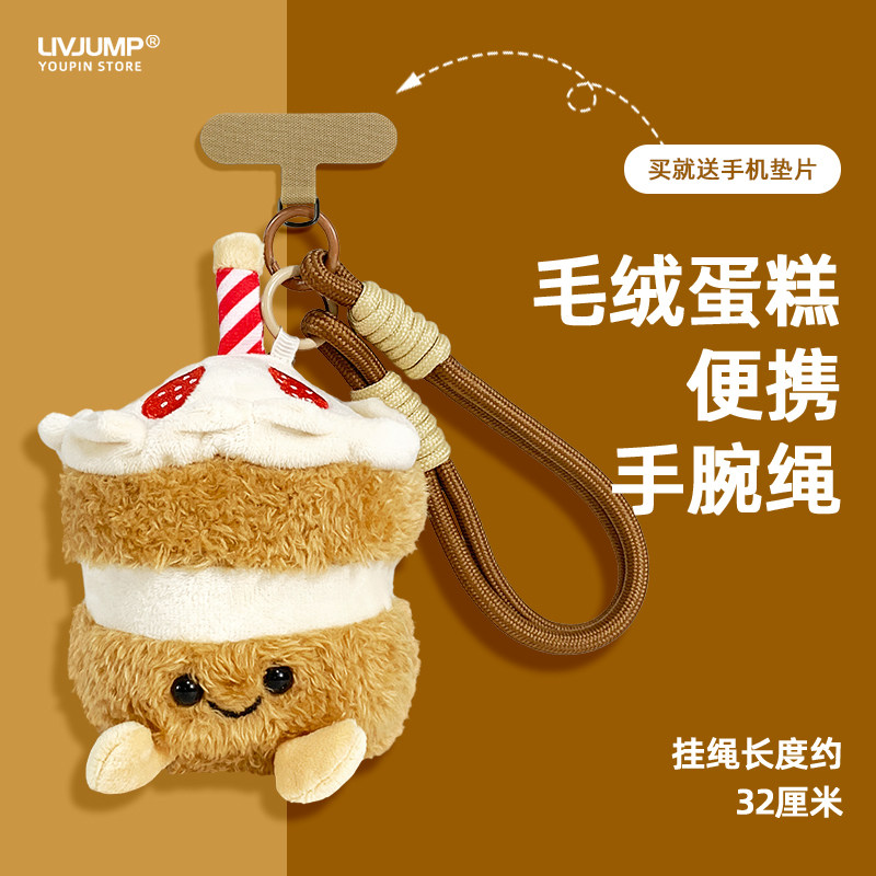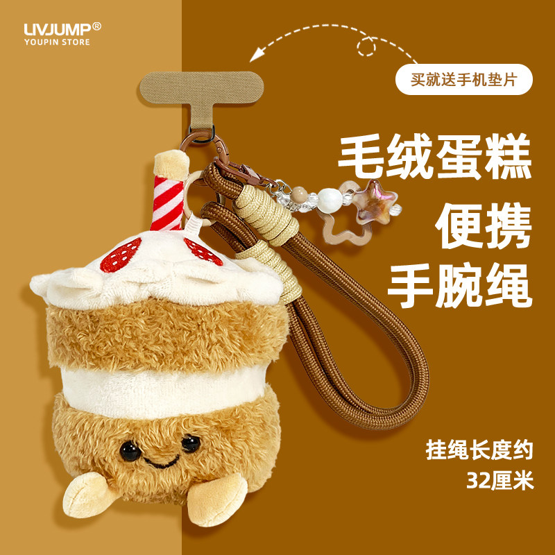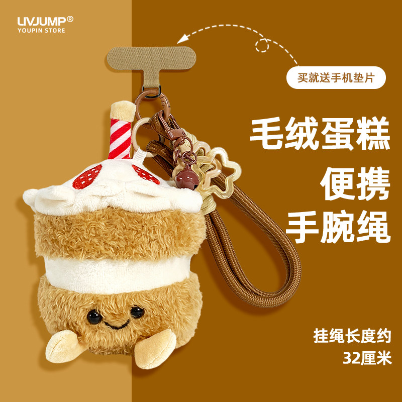 可爱蛋糕毛绒玩具挂手机挂绳短款爱心垫片手机壳情侣手腕绳小众潮
