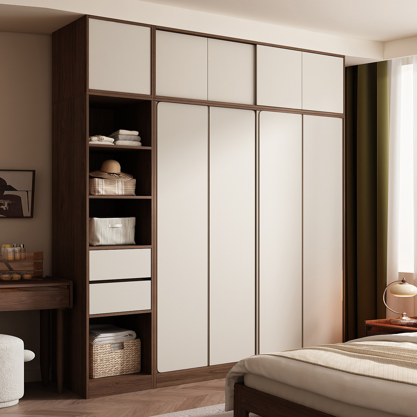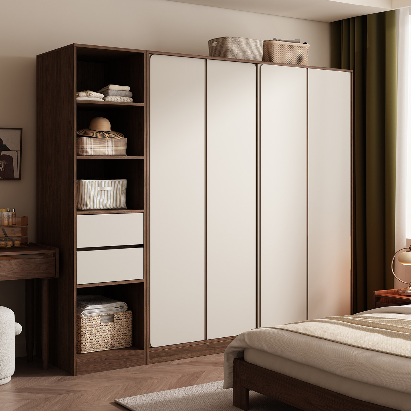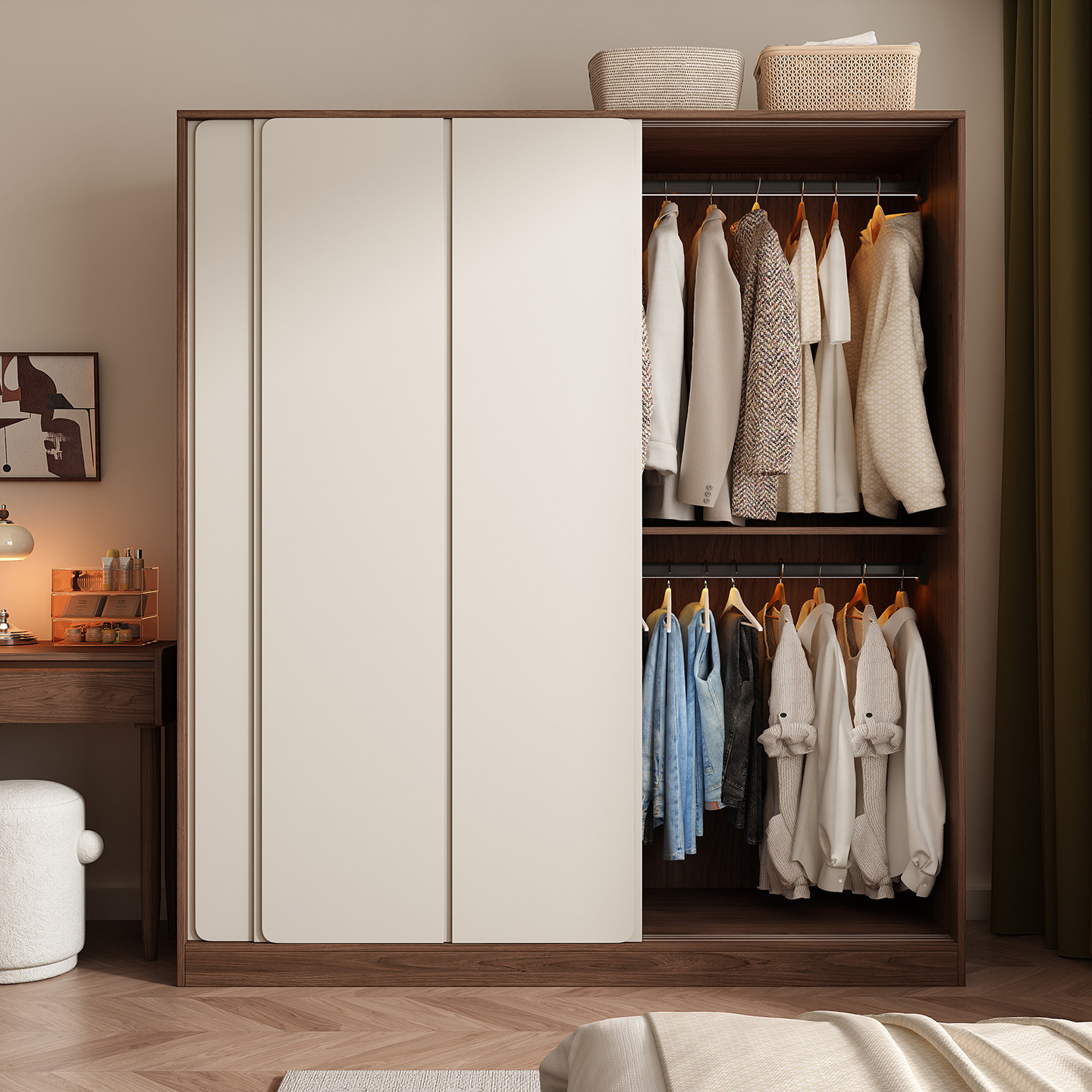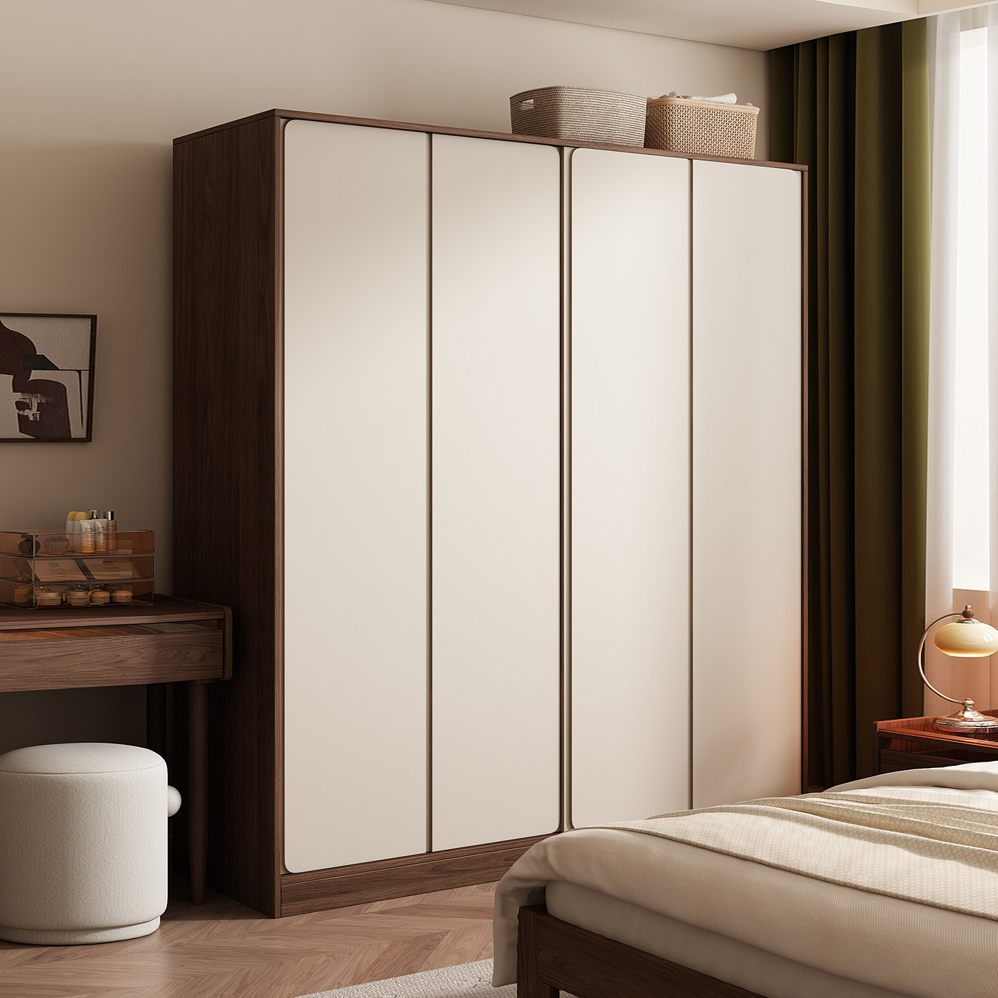 木兜家具集裳衣柜实木黑胡桃木色中古风复古推拉门卧室移门大衣橱