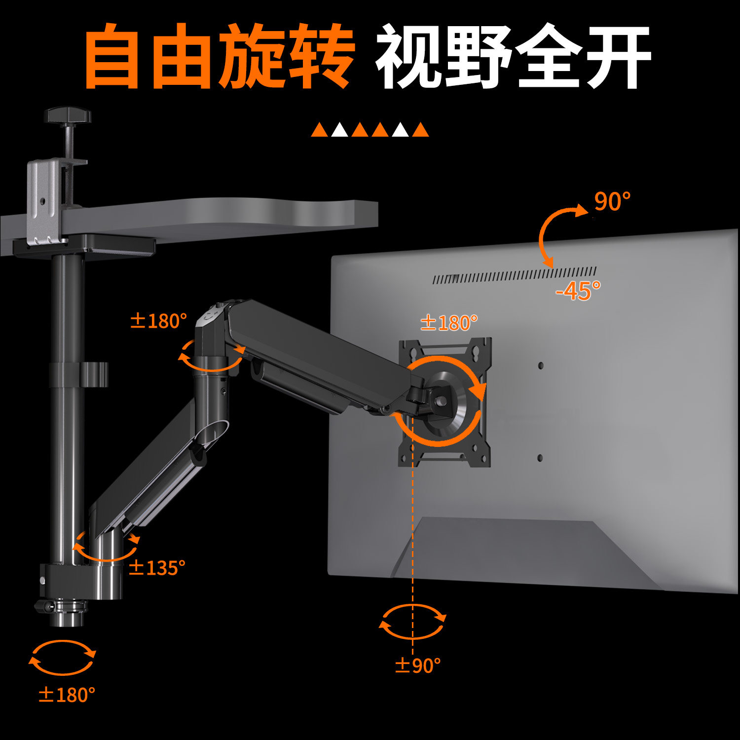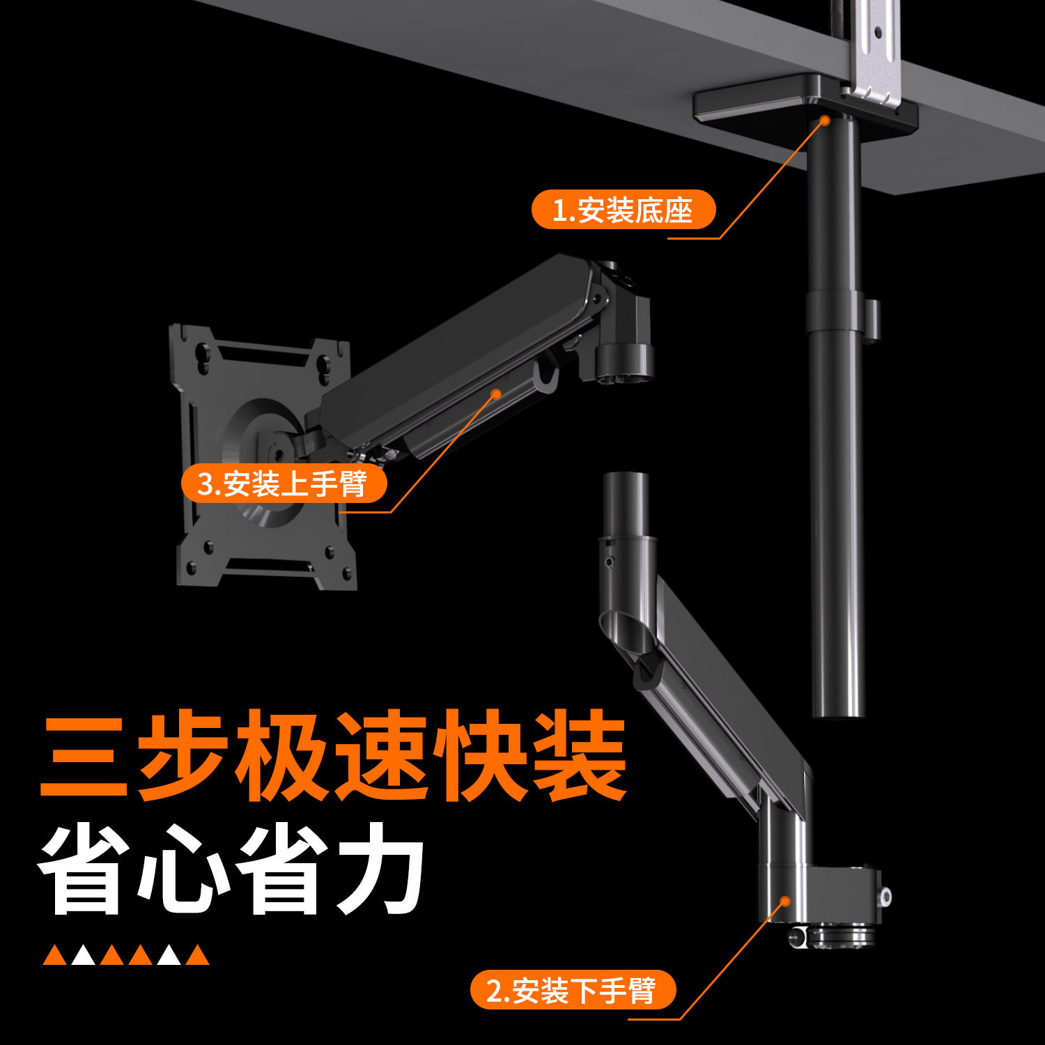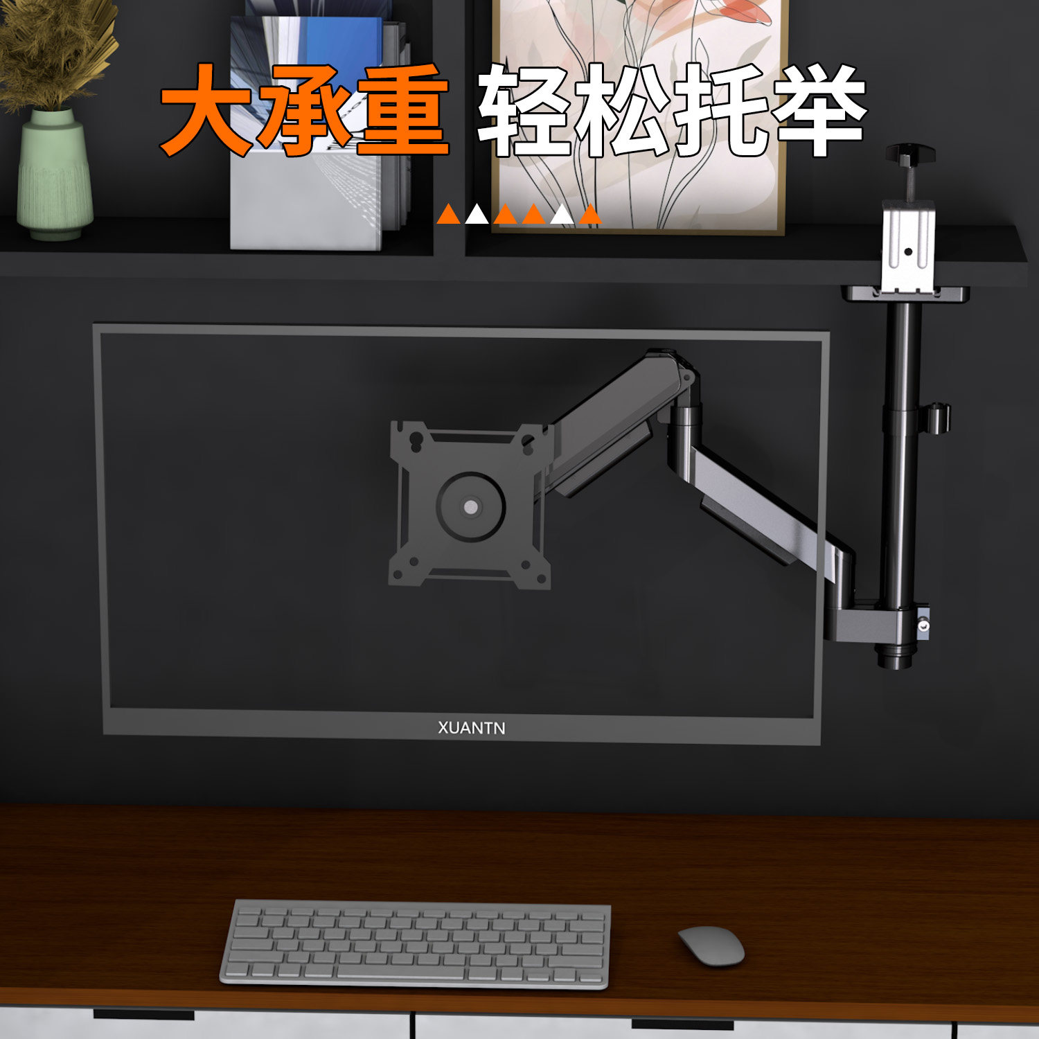 倒挂电脑显示器支架书柜吊装屏幕机械臂免打孔桌面升降旋转增高架