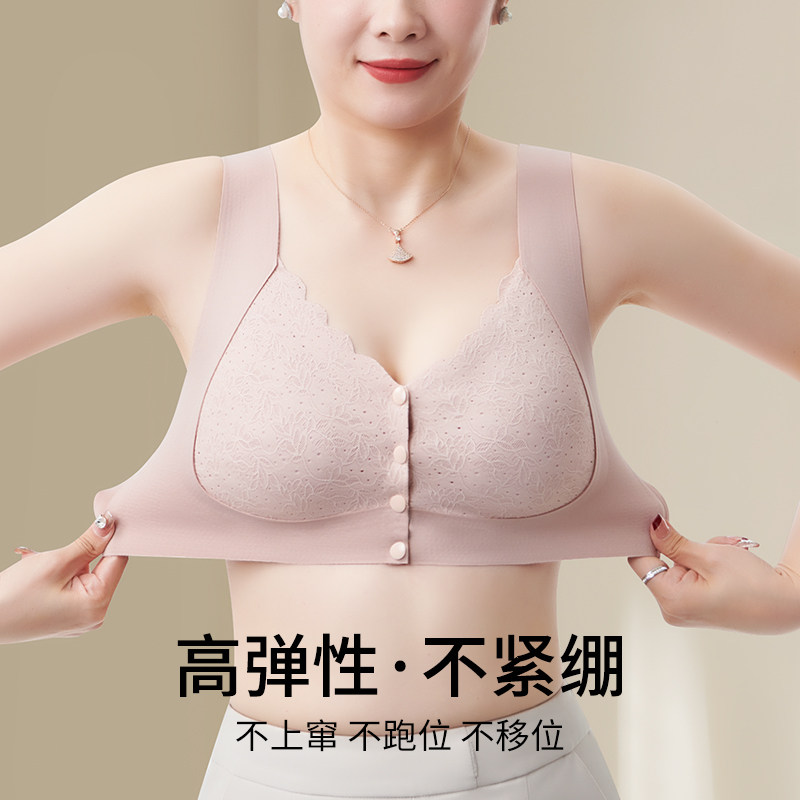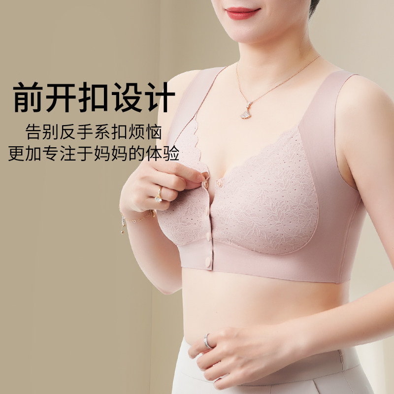妈妈内衣女无痕冰丝背心式文胸中老年人美背无钢圈聚拢前扣文胸罩