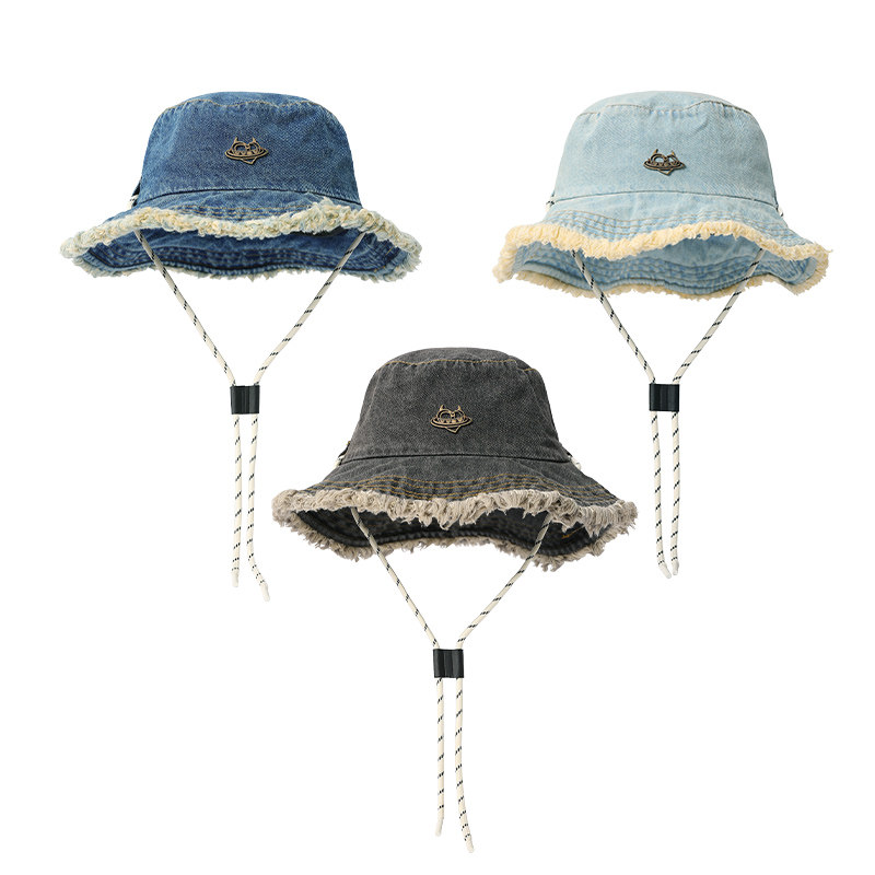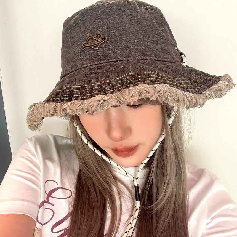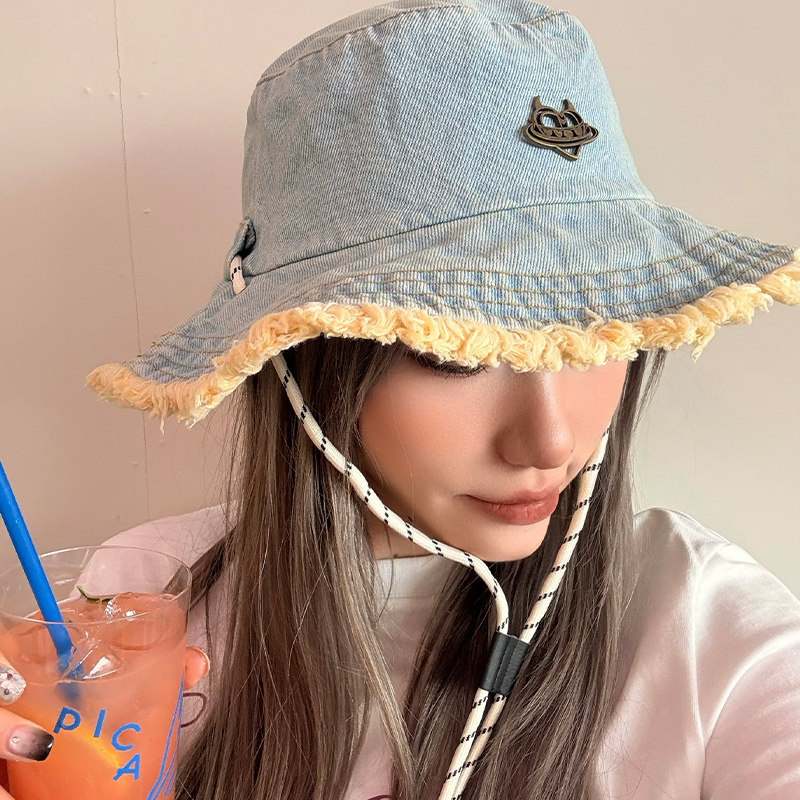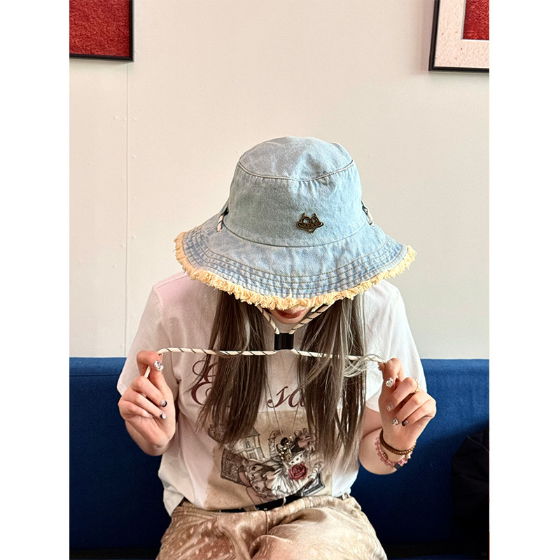 妖精的口袋毛边牛仔大帽檐渔夫帽子2026年春夏新款显脸小遮阳盆帽