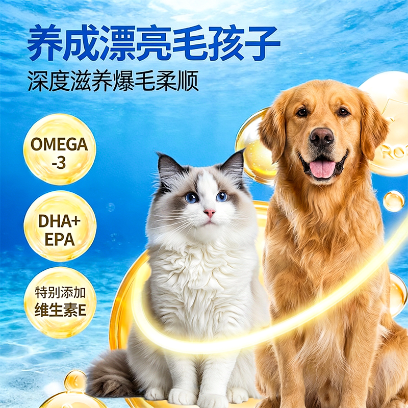 深海鱼油猫用狗狗猫咪专用胶囊鱼油宠物防掉毛美毛护肤犬维生素