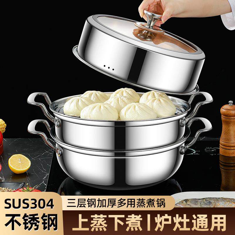 苏泊尔304不锈钢多用蒸煮汤锅汤煲特加厚汤锅家用三层复合钢双耳