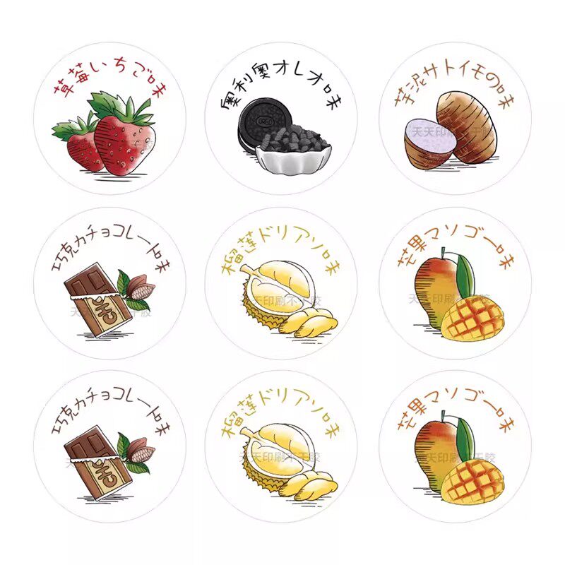 烘焙冰淇淋口味贴纸草莓芒果榴莲芋泥奥利奥雪媚娘甜品标签不干胶