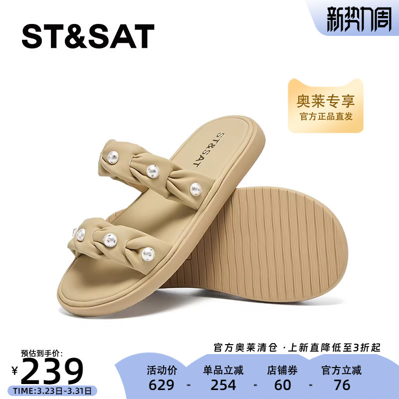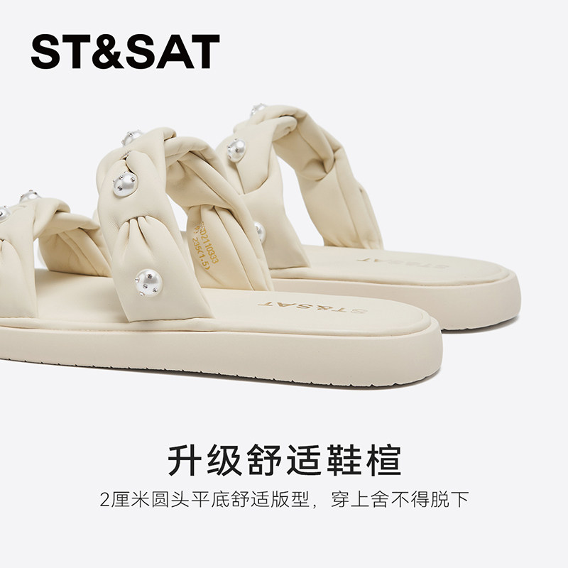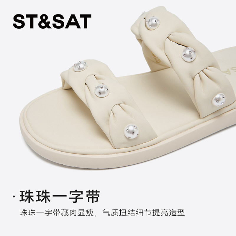 星期六简约纯白一字拖2025新款优雅外穿平底一脚蹬凉拖SSD2110333