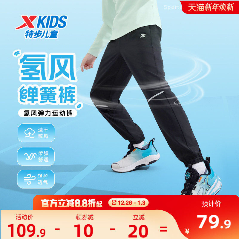 特步童装儿童速干运动裤男童裤子2025夏季新款大童薄款夏装防蚊裤