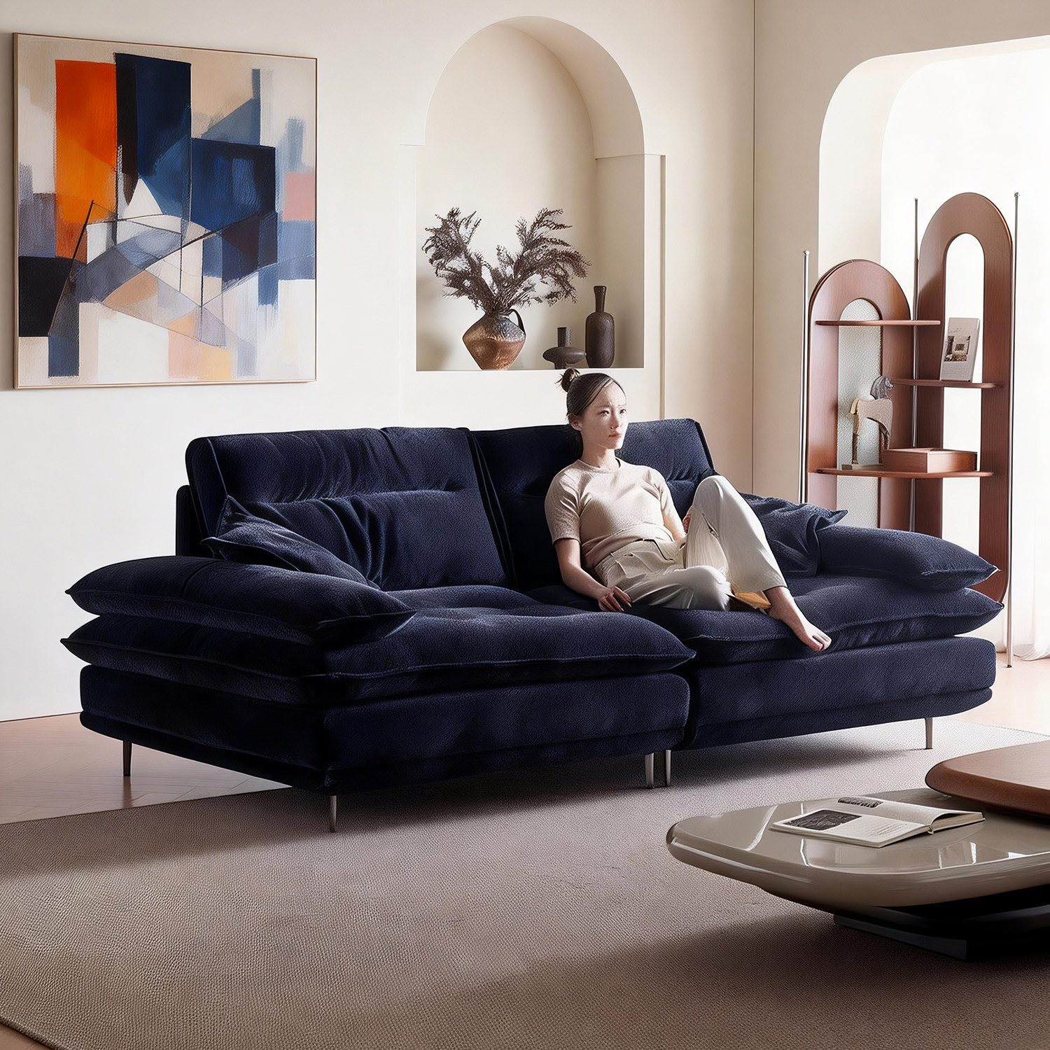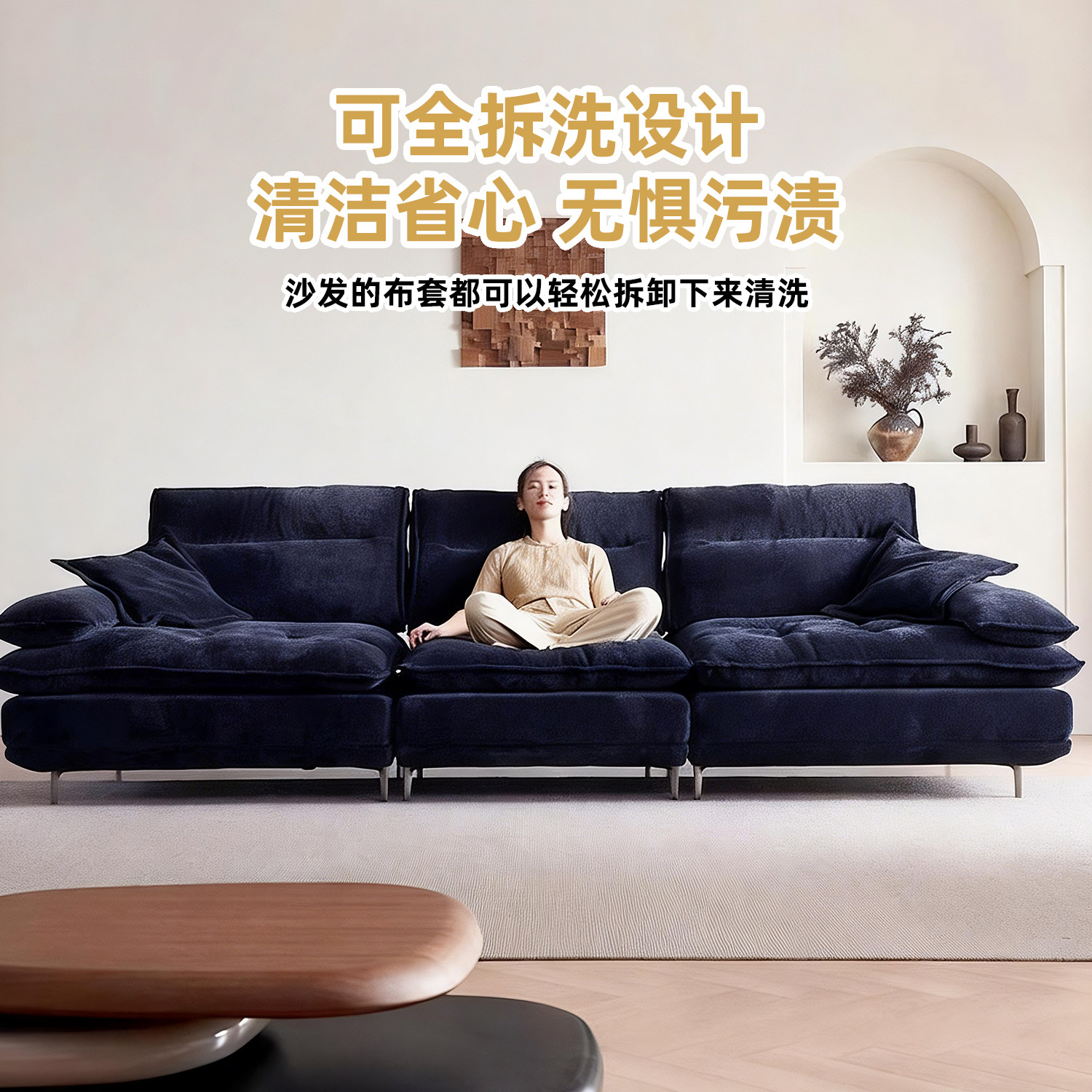 上进意式极简雪尼尔布艺大坐深全拆洗棉麻移动调节靠背布艺沙发
