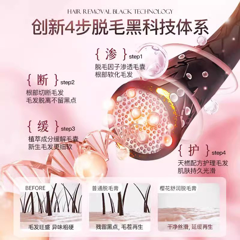 樱花脱毛膏全身可用快速无痛温和不刺激去腋下腋毛手腿毛不留黑点