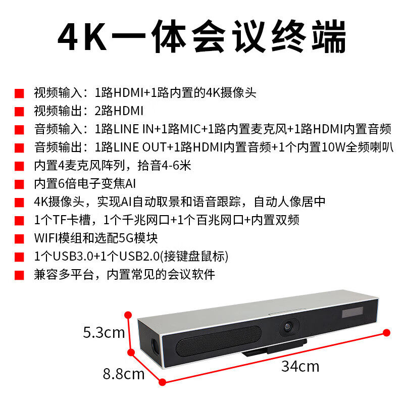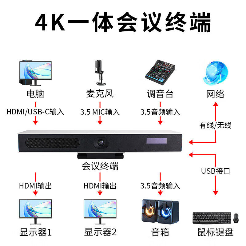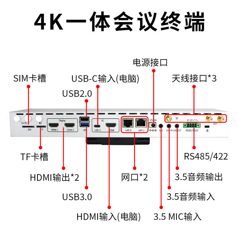 戴浦(DAIPU)4K高清DP-RM5PRO视频会议终端3路HDMI+1路USB输入远程网络高清远程视频会议终端一体机会议主机