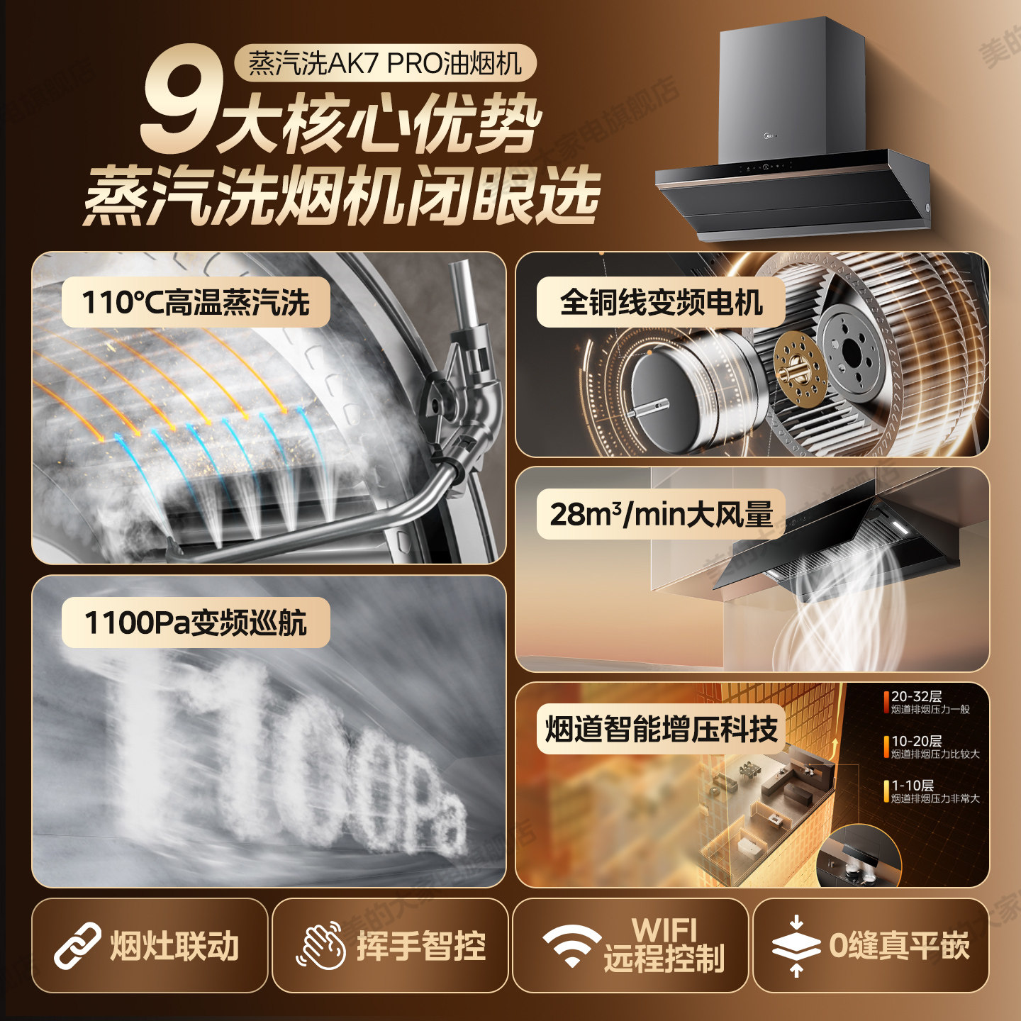 [铜线电机]美的蒸汽洗AK7PRO油烟机家用厨房大吸力AK5PRO官方旗舰