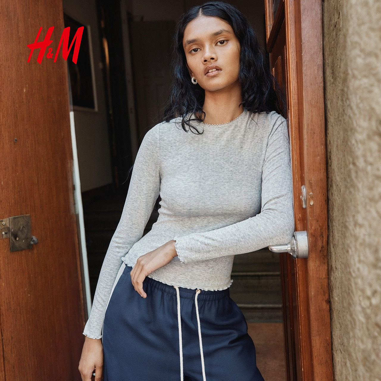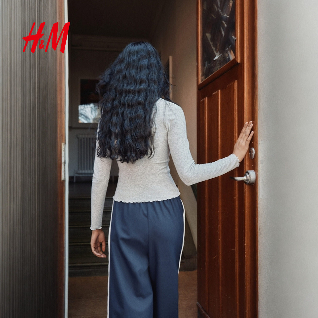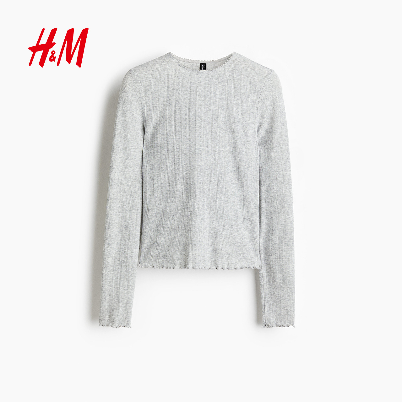 HM女装T恤2025年冬季新款圆领简约气质打底上衣针织套衫1296047