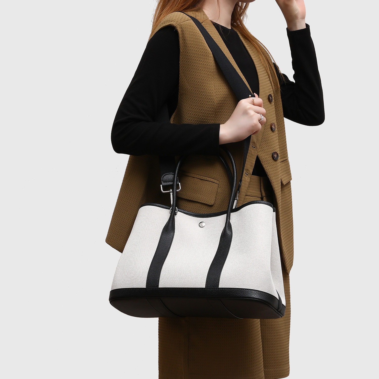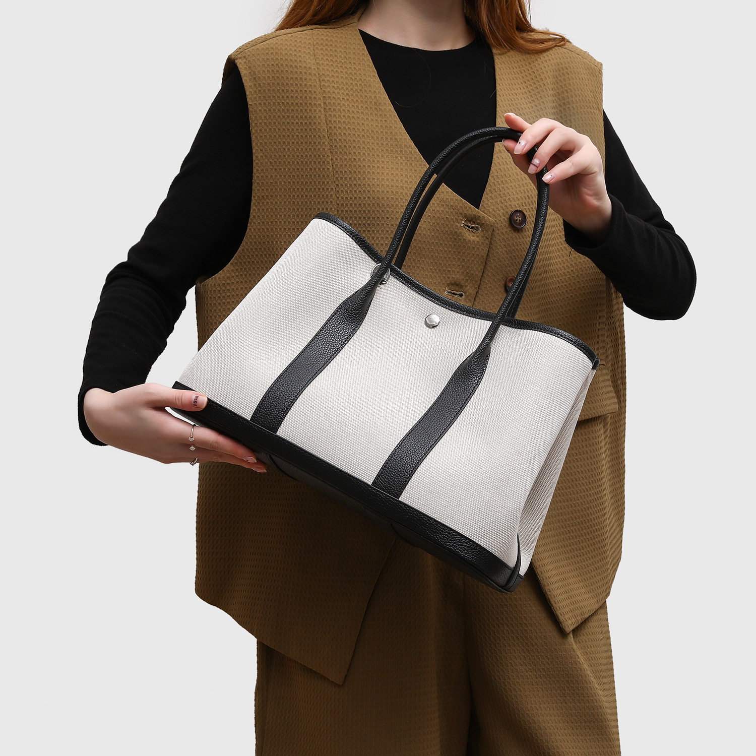 店酷奇小众高级感女士真皮手提包大容量撞色花园托特包女包