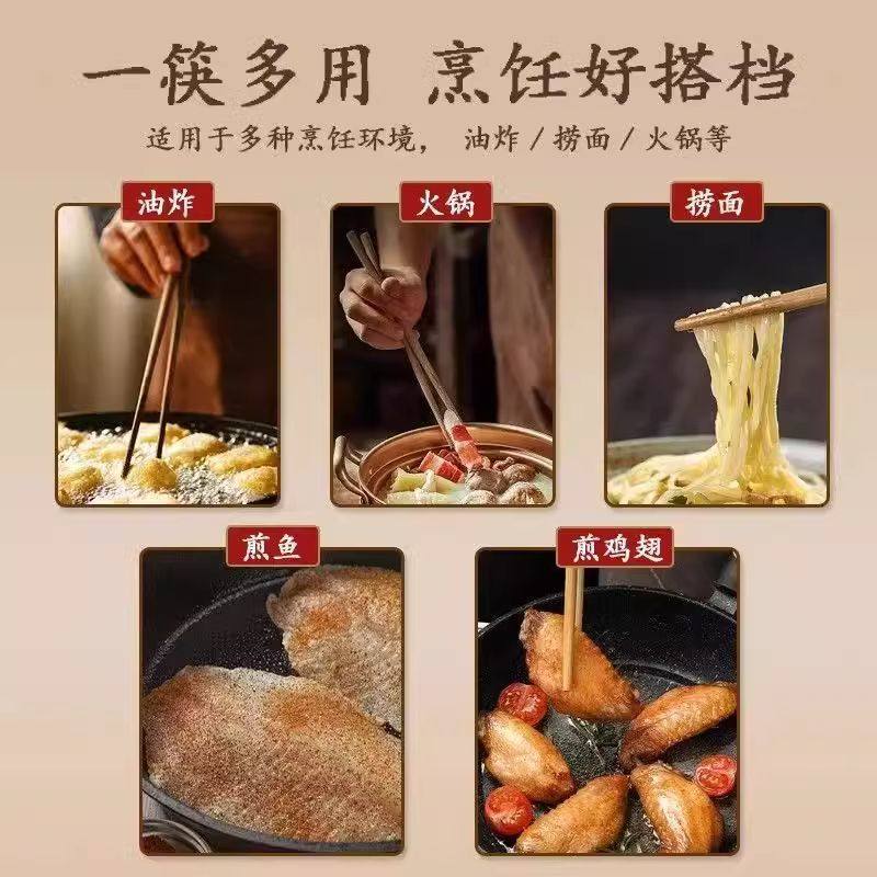 楠竹火锅筷子加长家用竹筷子捞面炸油条防滑红檀鸡翅木筷商用高温