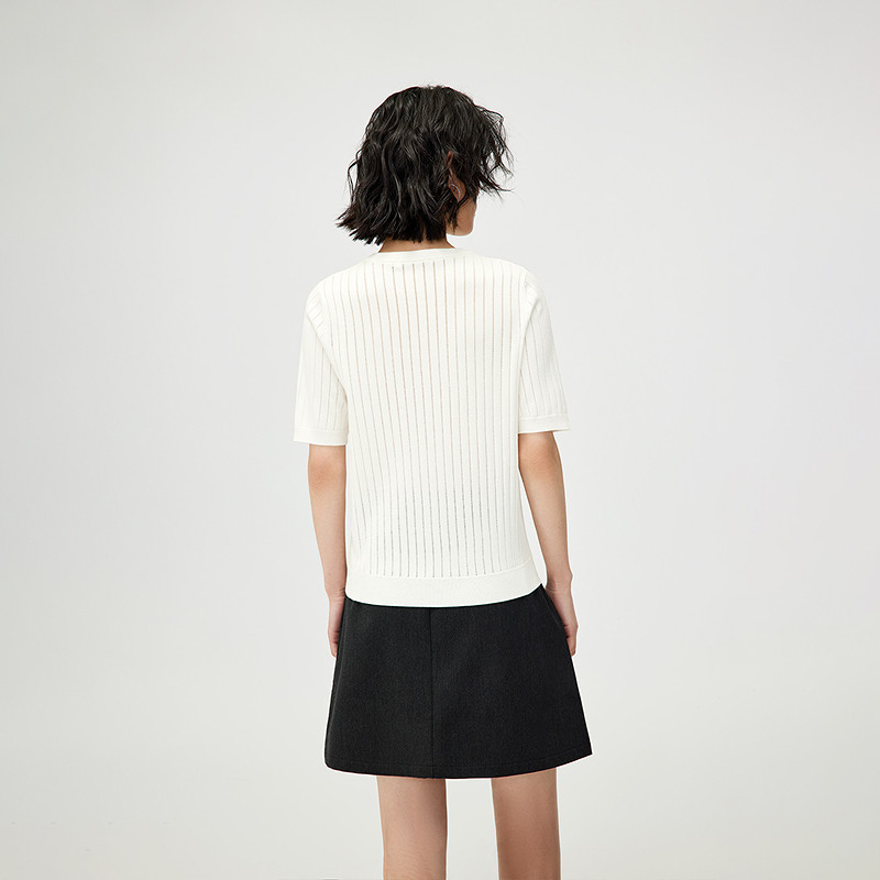 【含桑蚕丝】HLA/海澜之家轻薄短袖针织衫25春夏新含羊毛毛衣女装
