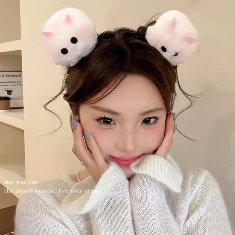 可爱毛绒绒小兔子发夹女光遇cos头饰前额刘海头顶夹无痕一字发卡