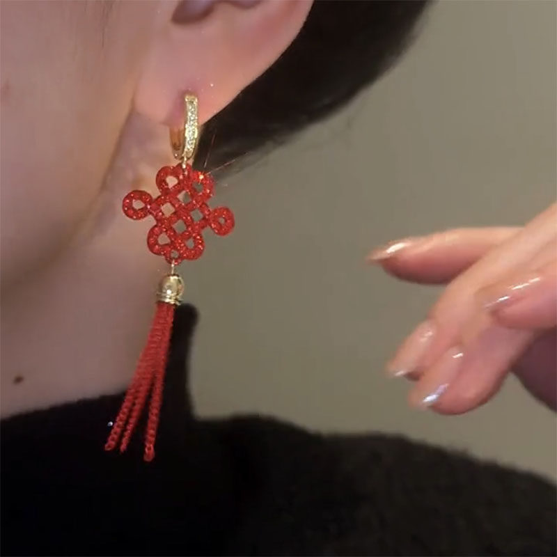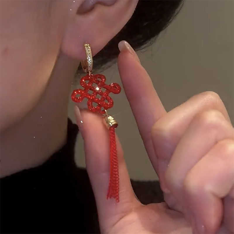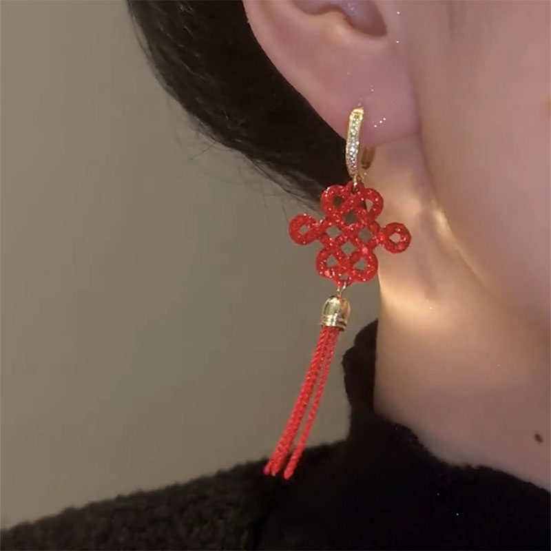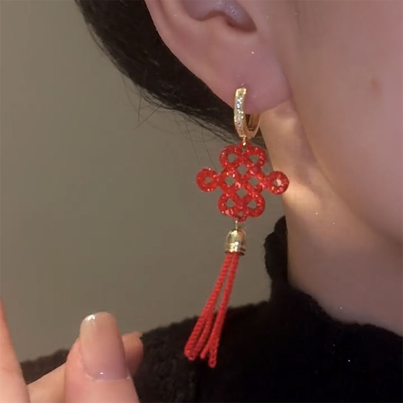 中国结长款流苏耳环2023新款爆款高级秋冬耳钉女小众独特过年耳饰