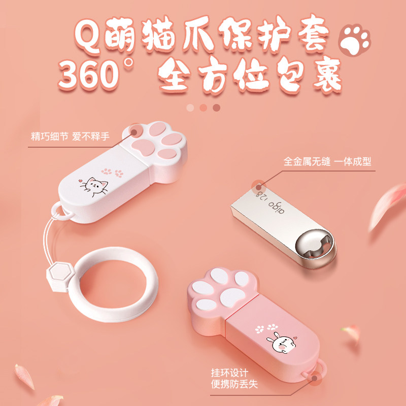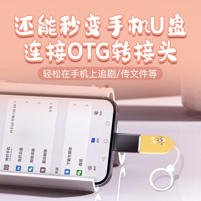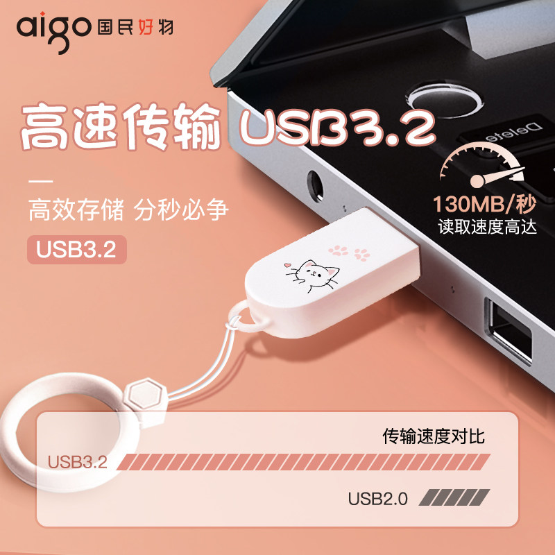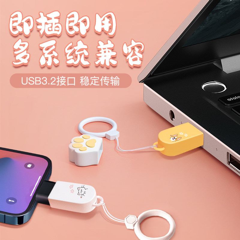 爱国者女生款卡通可爱u盘128g大容量高速USB3.2优盘手机电脑两用