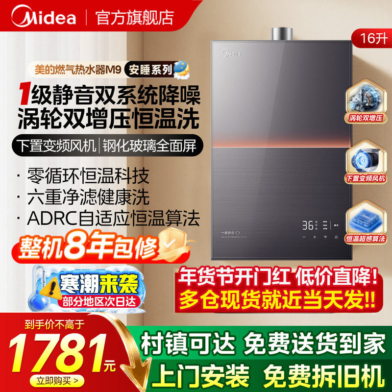 美的安睡燃气热水器一级静音家用天然气恒温洗节能下置风机M9max
