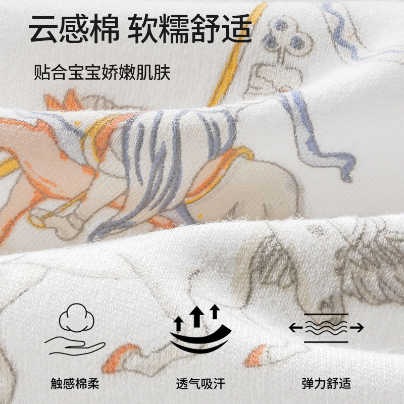 小猪大卫新生儿秋季保暖连体衣男女宝宝卡通印花中开夹棉爬服