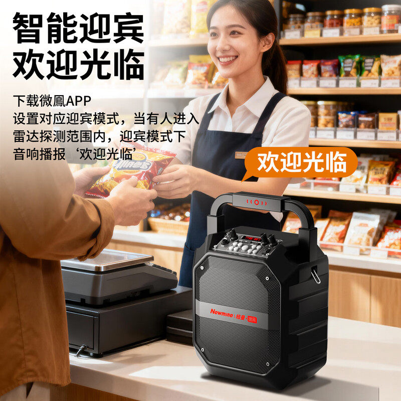 纽曼2025新款智能蓝牙音箱商铺防盗老人大音量音响收款语音播报器