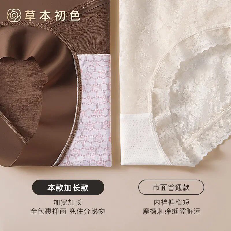 草本初色妇炎洁牌内裤女2025新中高腰加长纯棉底裆无痕抗菌三角裤