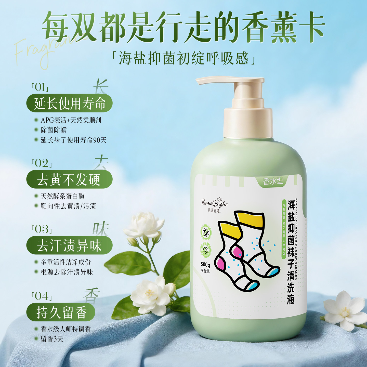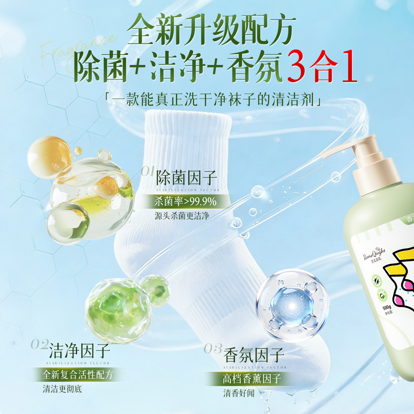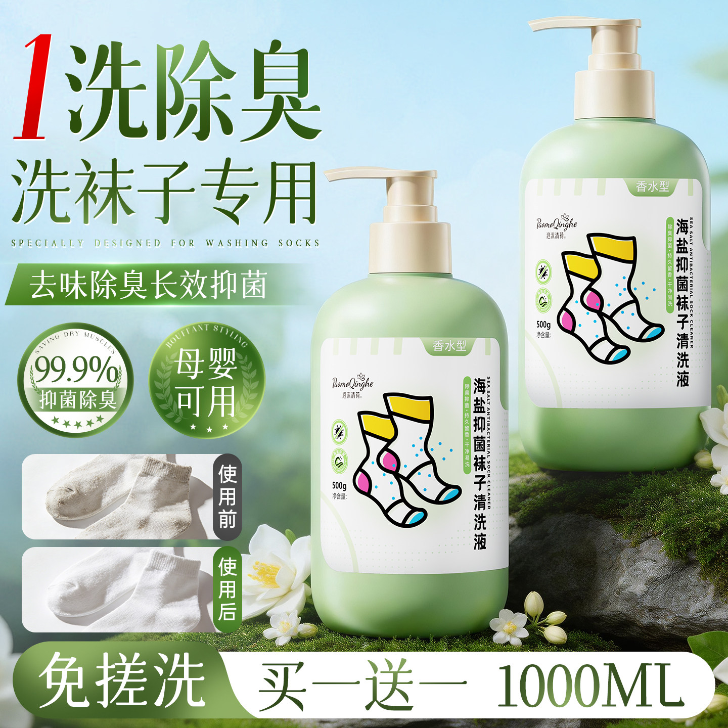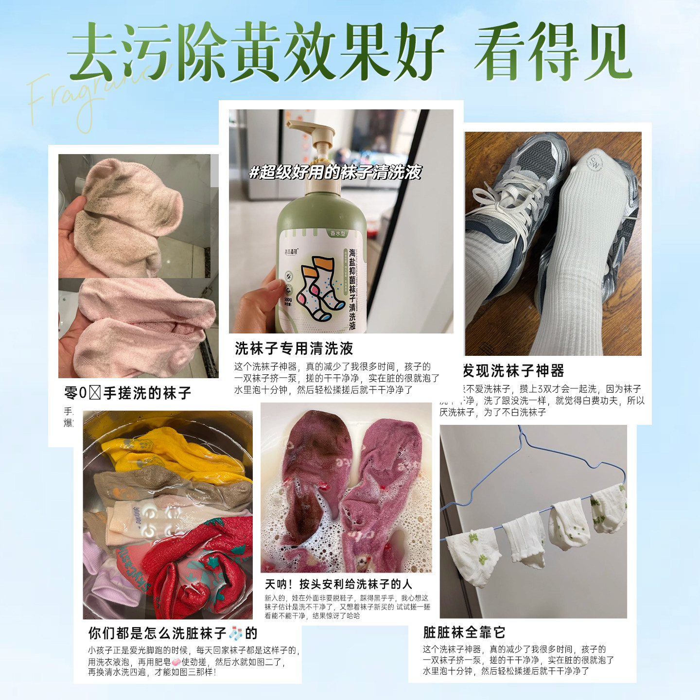 袜子清洁剂免搓洗抑菌除臭持久留香去污去黄白洗衣液脚消毒洗涤剂