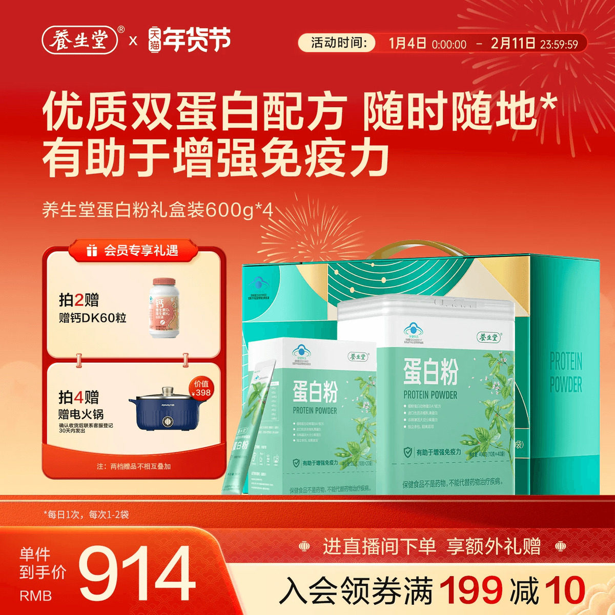 养生堂蛋白粉中老年人乳清大豆蛋白质粉增强免疫力官方正品旗舰店