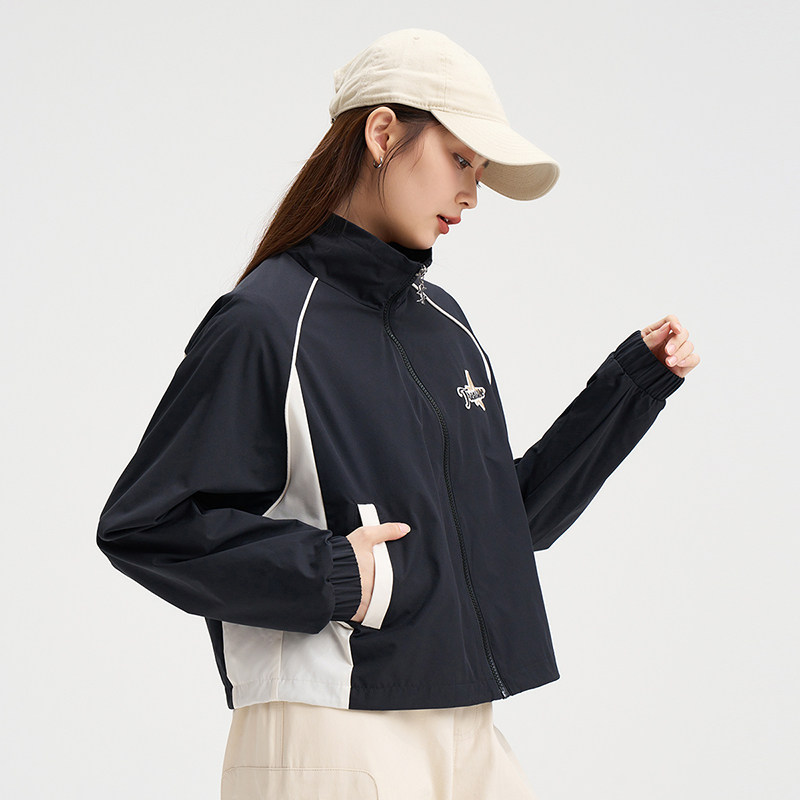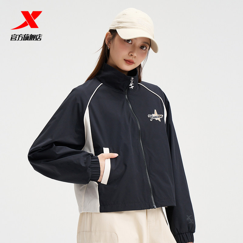 特步外套女士2025秋季新款休闲拼色风衣户外运动夹克976328150585