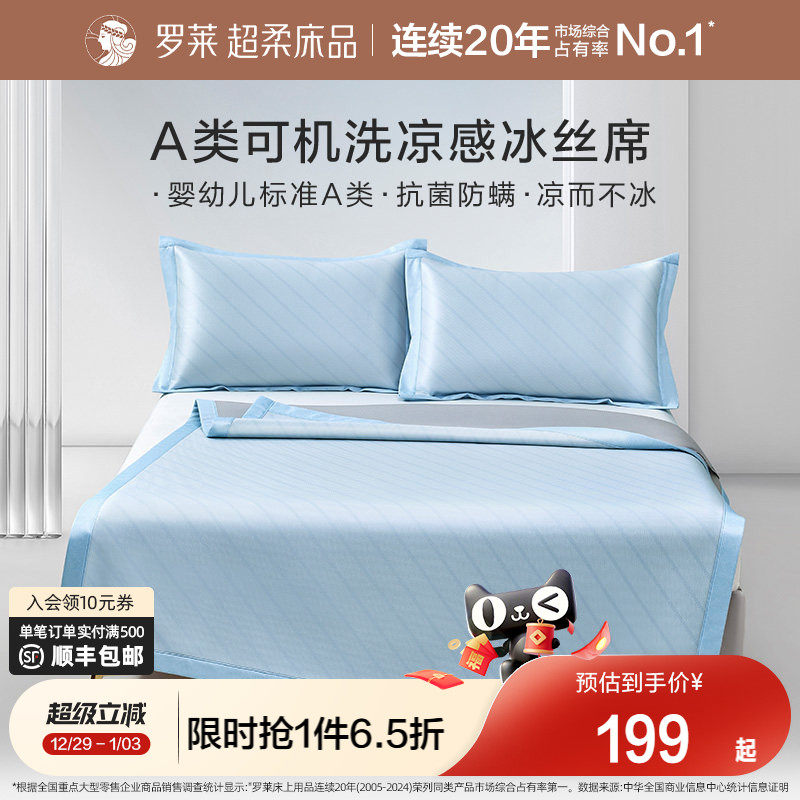 罗莱家纺凉席A类抗菌冰丝席凉感可水洗可折叠学生宿舍席子