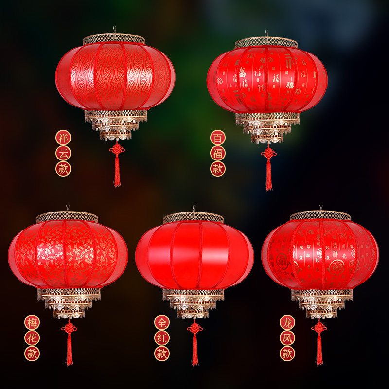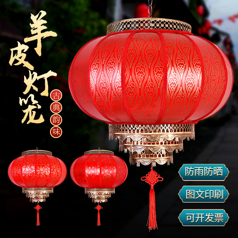 户外圆仿古防水大红灯笼印字吊灯挂饰羊皮插电室内发光灯泡塑料