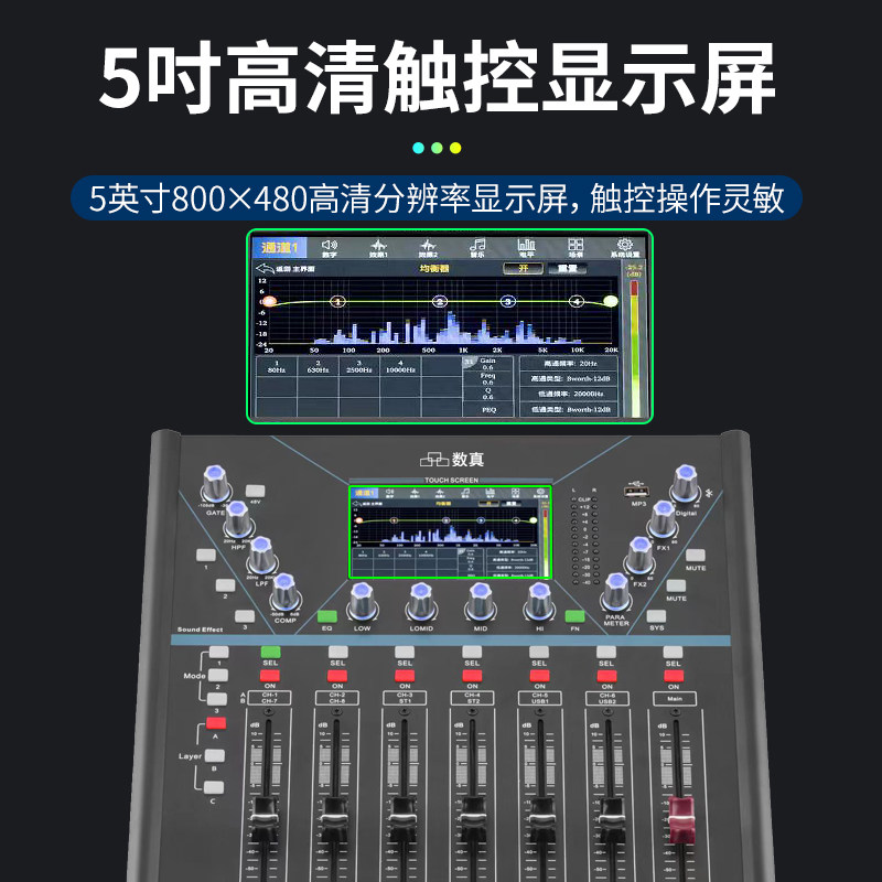 数真10路视频会议专业数字调音台SZ-DMX10演出直播11路信号输入9路信号输出5吋触控屏PC手机操控内置蓝牙