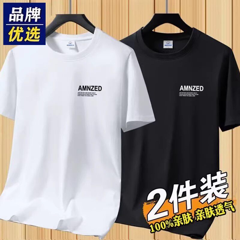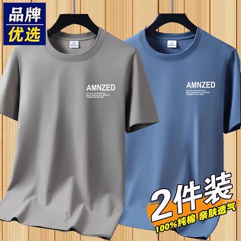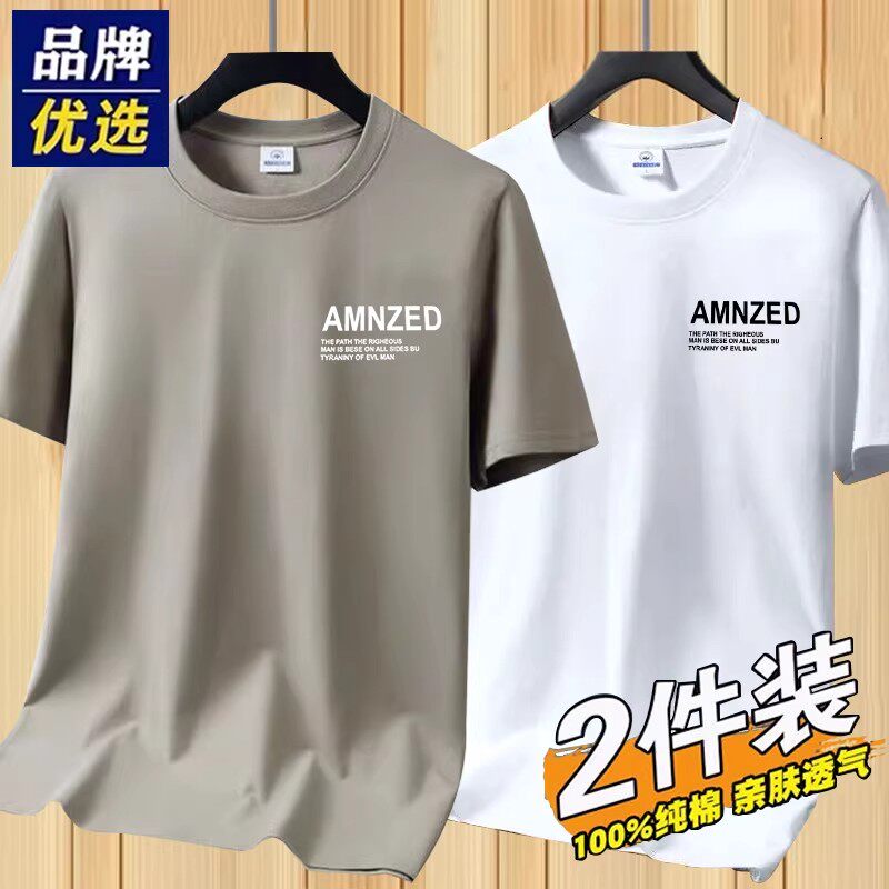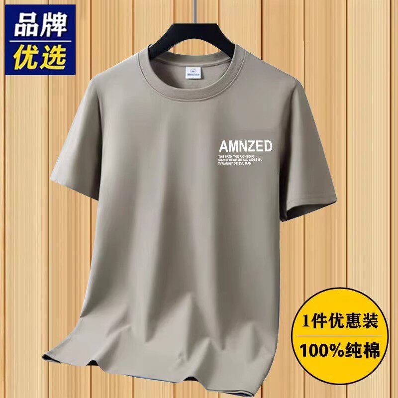 新疆长绒纯棉短袖t恤男士纯色宽松全棉半袖圆领汗衫简约百搭体恤
