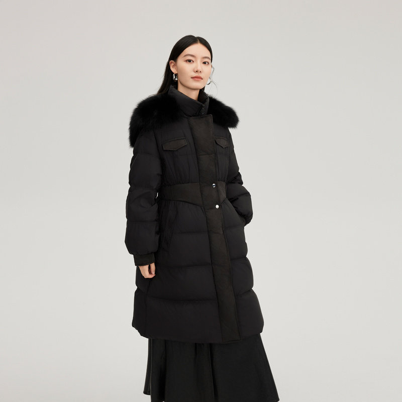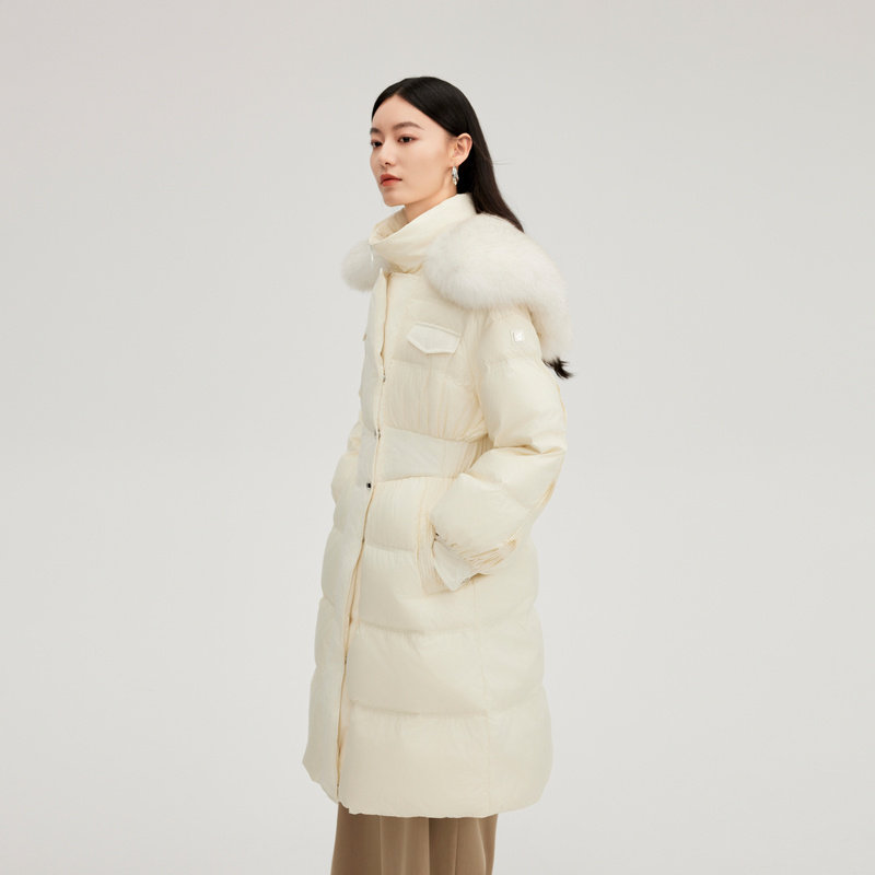 艾莱依鹅绒羽绒服女款冬新款长款外套保暖大衣收腰轻奢大毛领外套