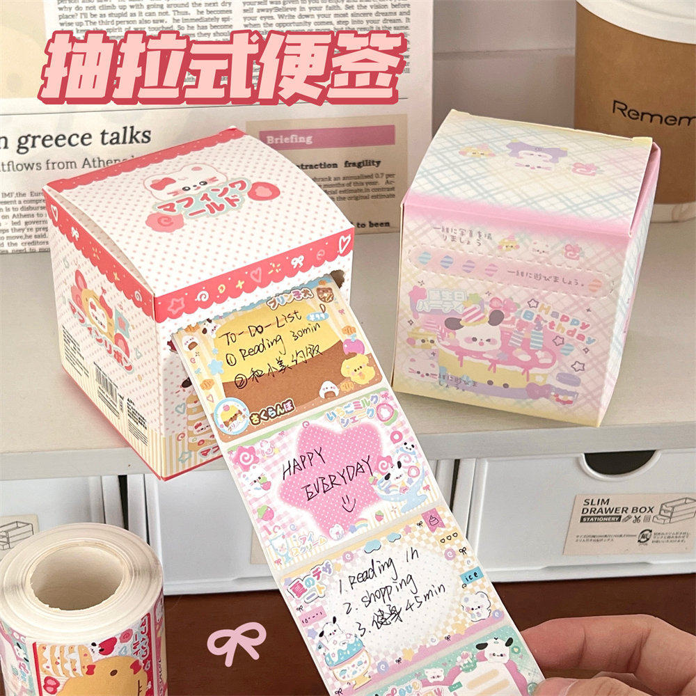 礼物奖励新款卡通抽拉式便利贴小狗可撕粘性便签纸学生卷卷贴贴纸