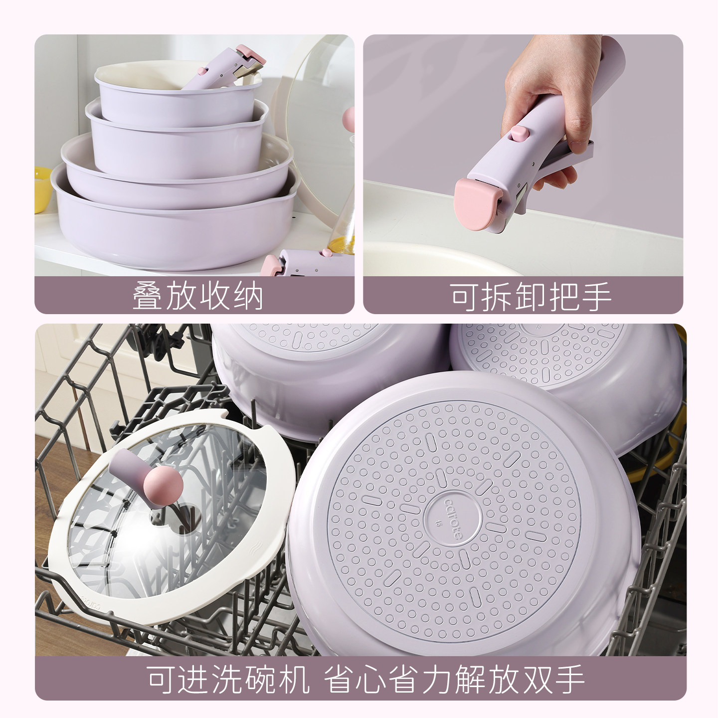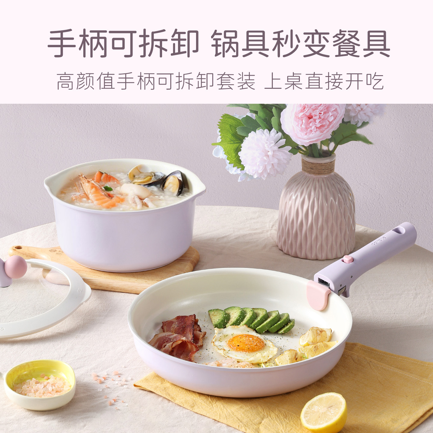 天然0氟陶瓷 坚固耐用不粘 手柄可拆更多能