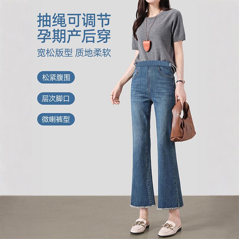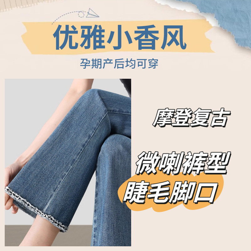 婧麒孕妇裤子春装外穿复古九分牛仔微喇裤2026新款不勒肚子孕妇装