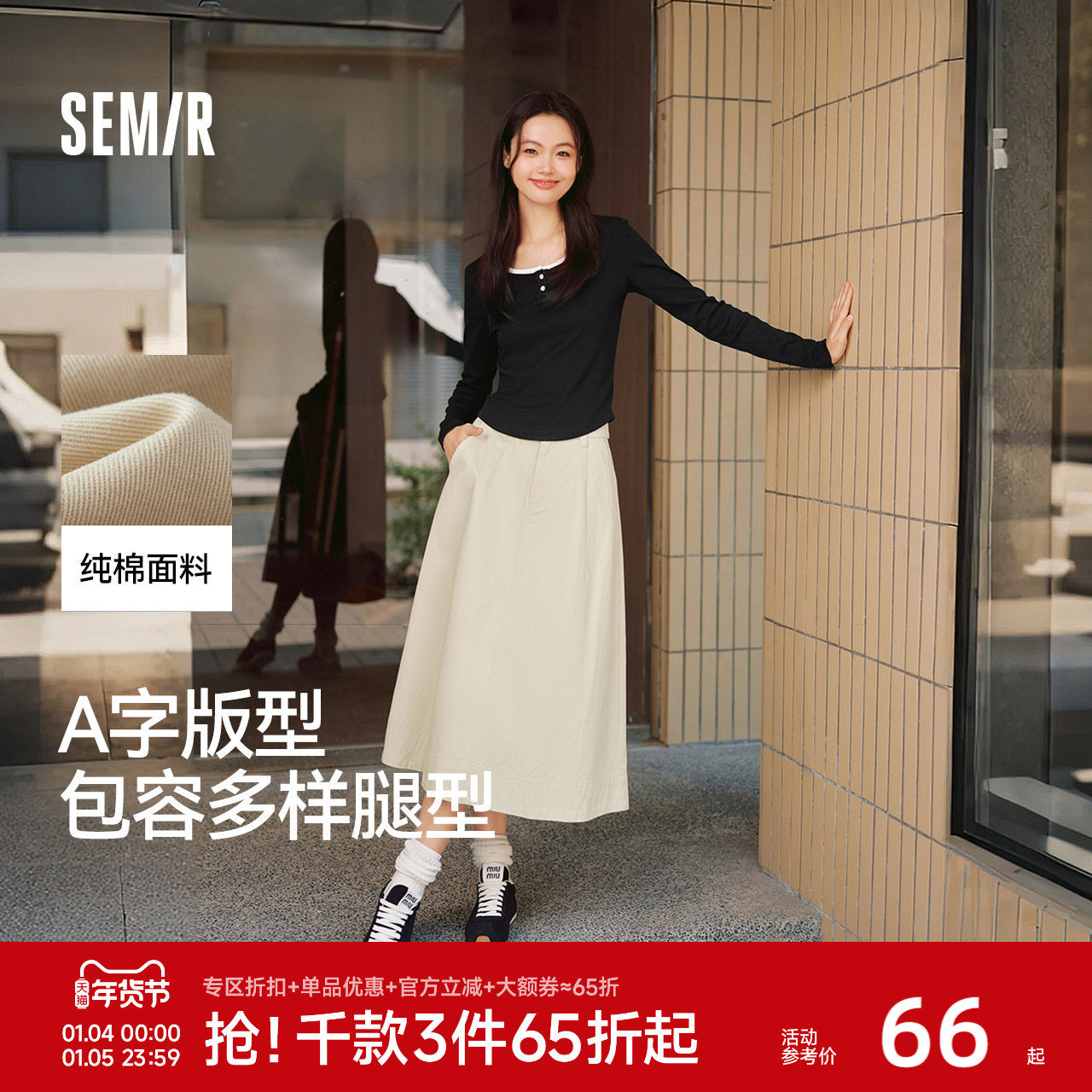 森马半身裙女磨毛纯色A字长裙简约百搭秋季纯棉宽松伞裙显瘦潮流