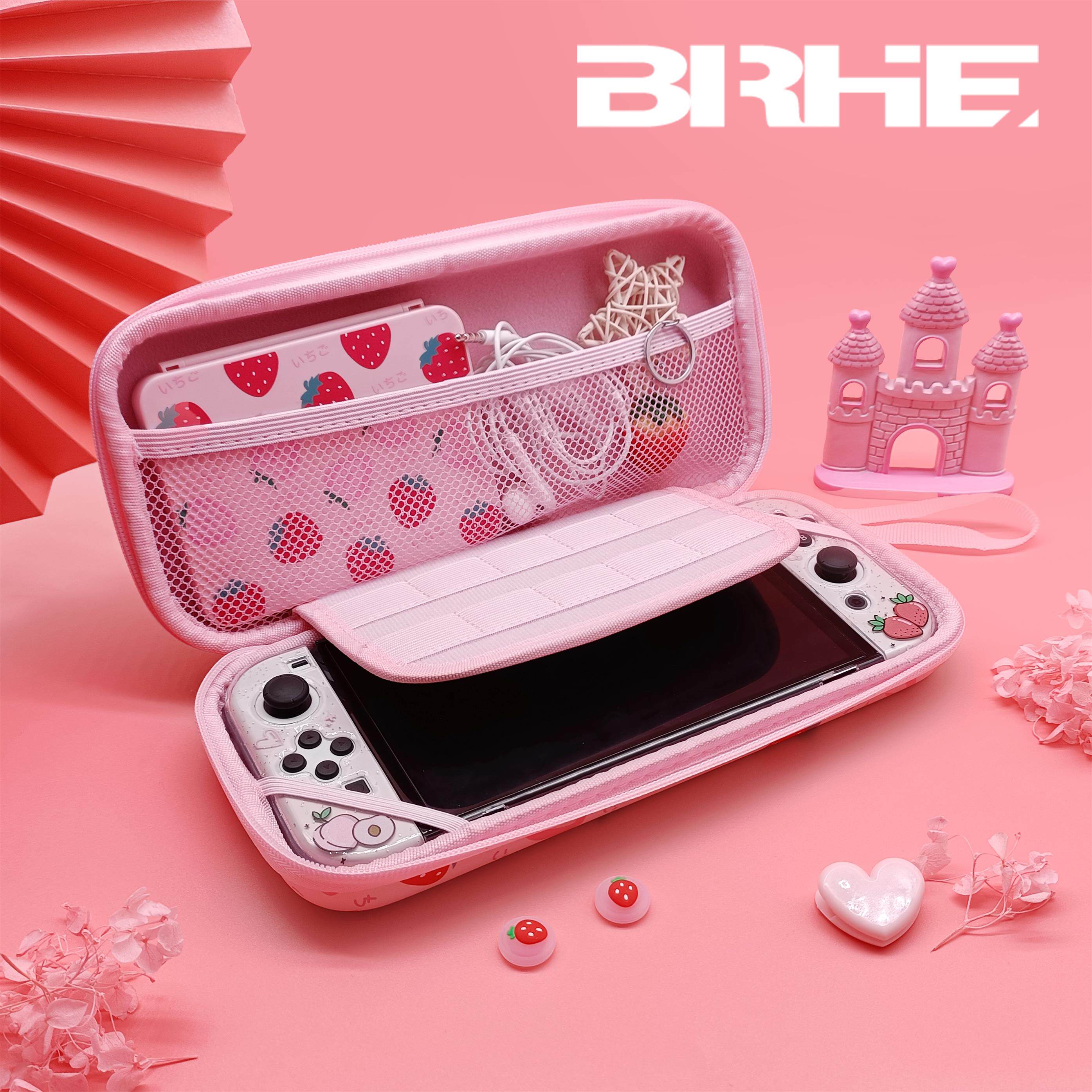 BRHE 任天堂Switch粉色草莓保护包收纳包保护壳卡盒NS OLED配件