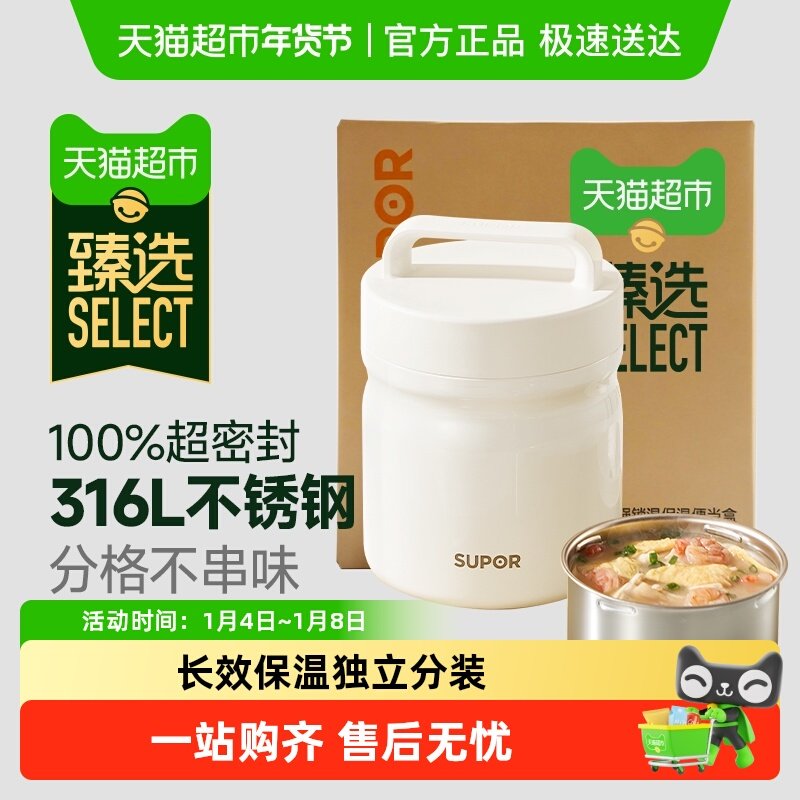 【甄选】苏泊尔超长保温饭盒桶大容量不锈钢学生餐盒上班族便当盒