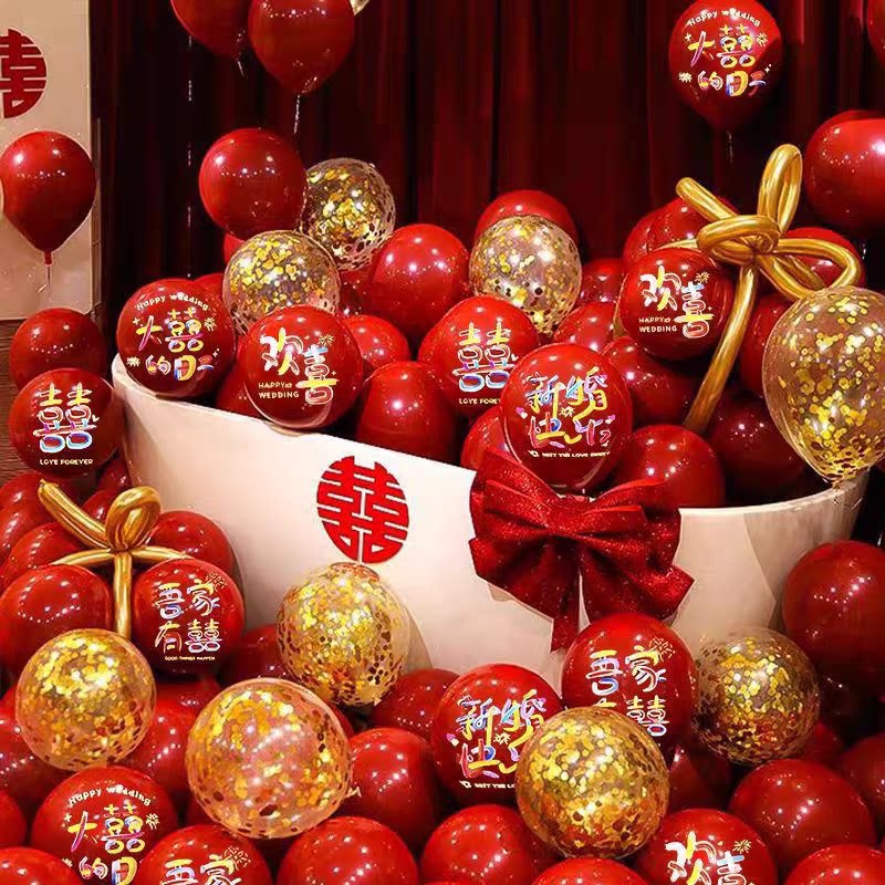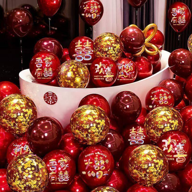 1000个大规格气球结婚布置红色彩虹婚房套装订婚场景新房卧室装饰