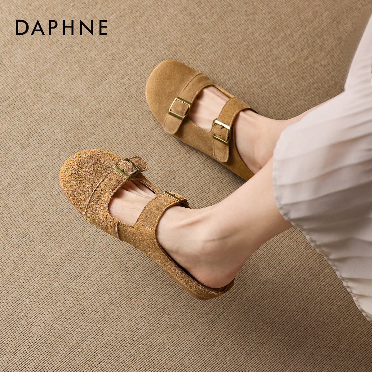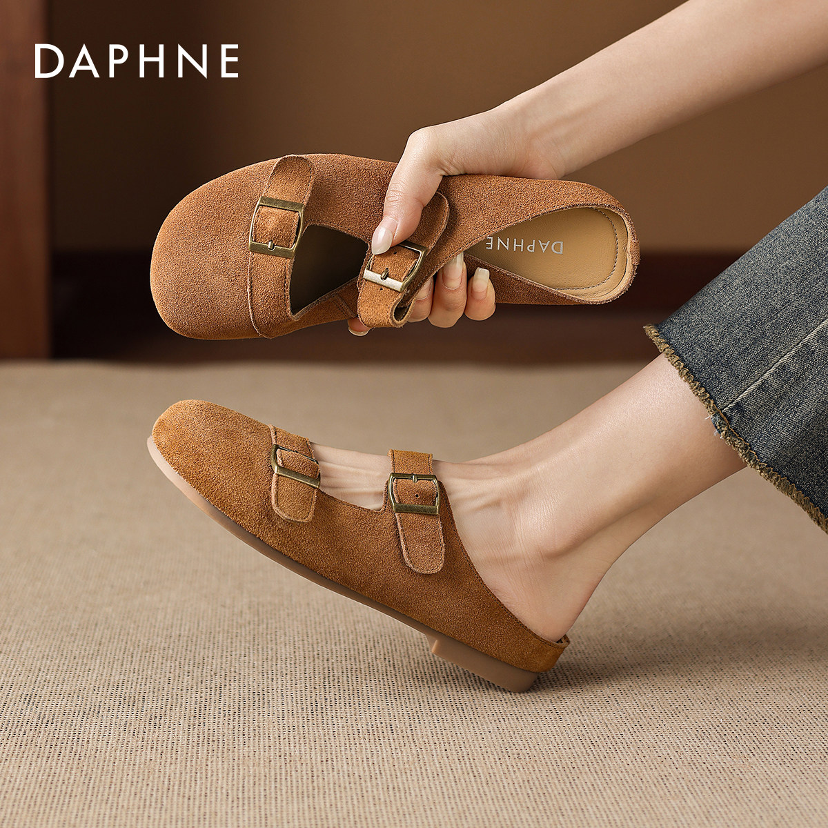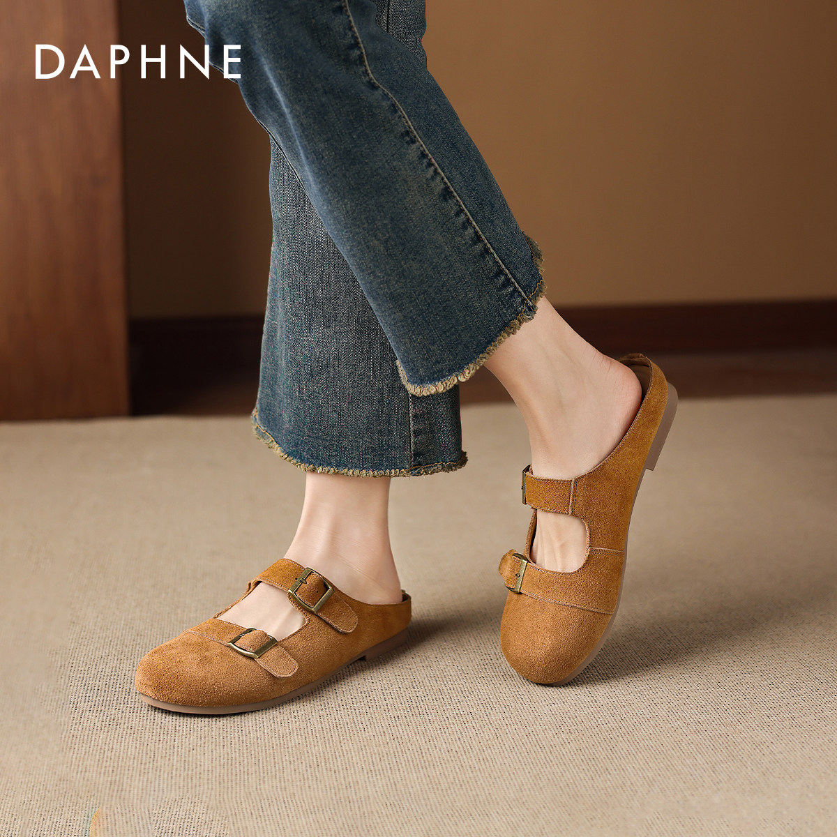 达芙妮棕色勃肯半拖鞋女2026新款夏外穿懒人软底反绒皮包头凉拖鞋