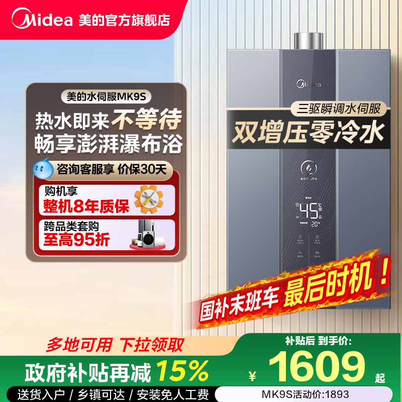 [政府补贴]美的燃气热水器零冷水16升家用天然气恒温水伺服MK9S