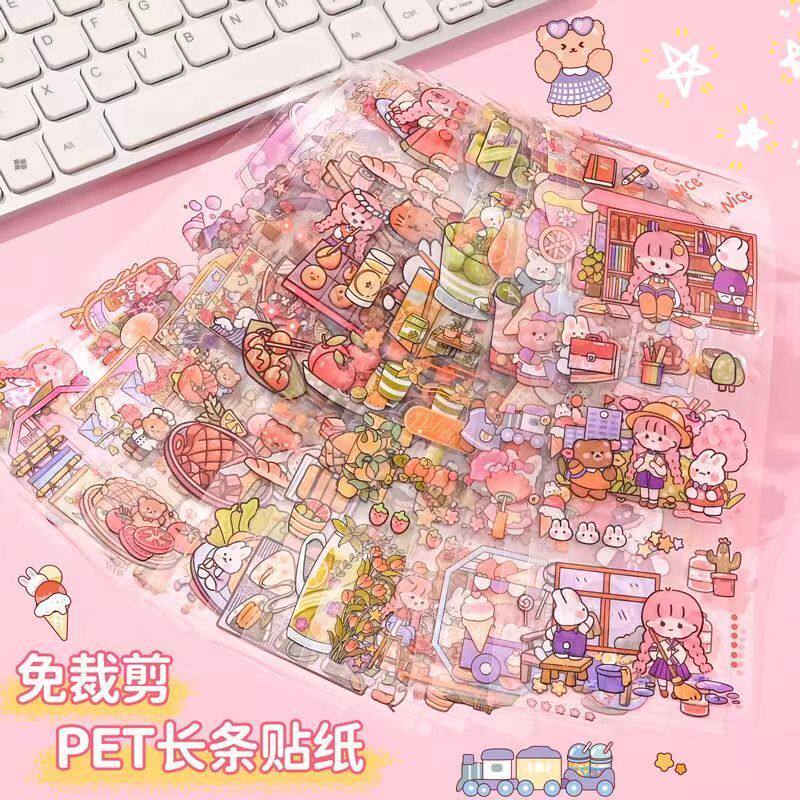 长条咕卡手帐贴纸大全贴纸儿童女孩贴画可爱卡通装饰pet透明防水