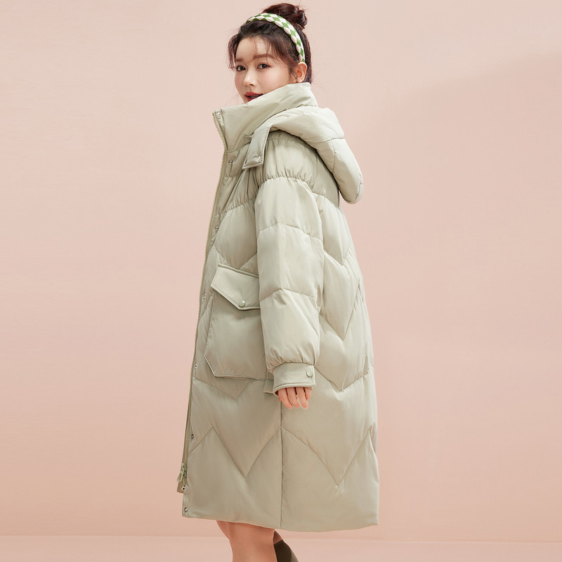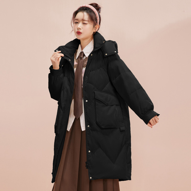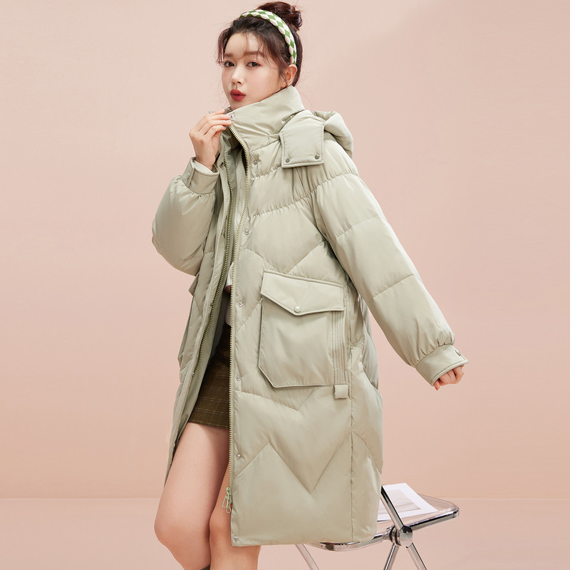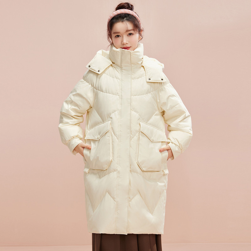 雪中飞2026秋冬新款女士中长款连帽羽绒服时尚纯色直筒显瘦廓形暖