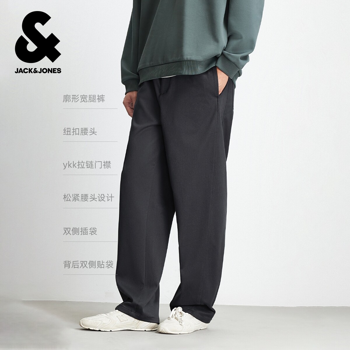 杰克琼斯男装休闲裤冬季新款长裤日常简约舒适纯色廓形裤子男款