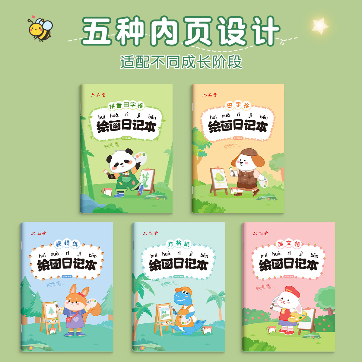 六品堂绘画日记本小学生一年级二三四年级用带拼音田字格看图写话本子日记本幼儿园儿童少儿涂画画图写画