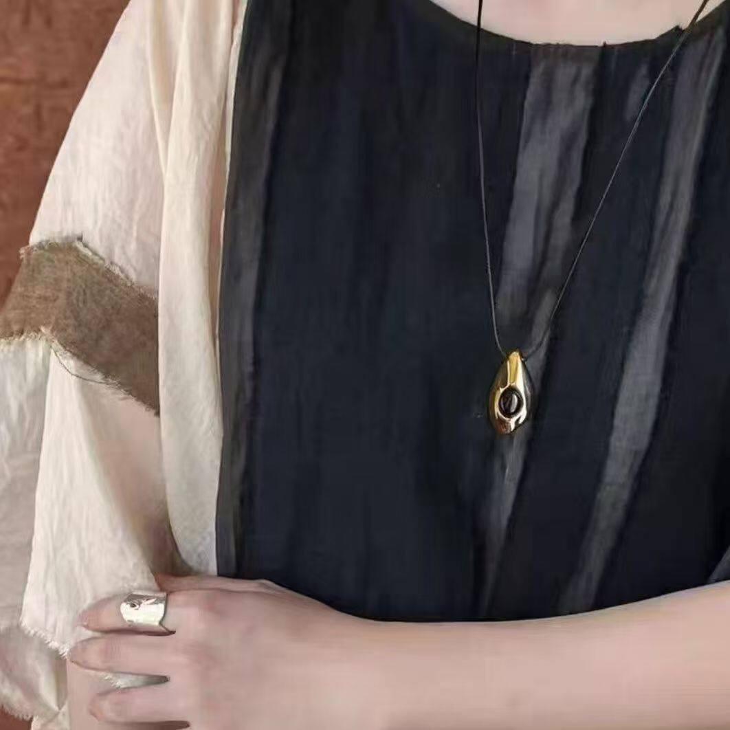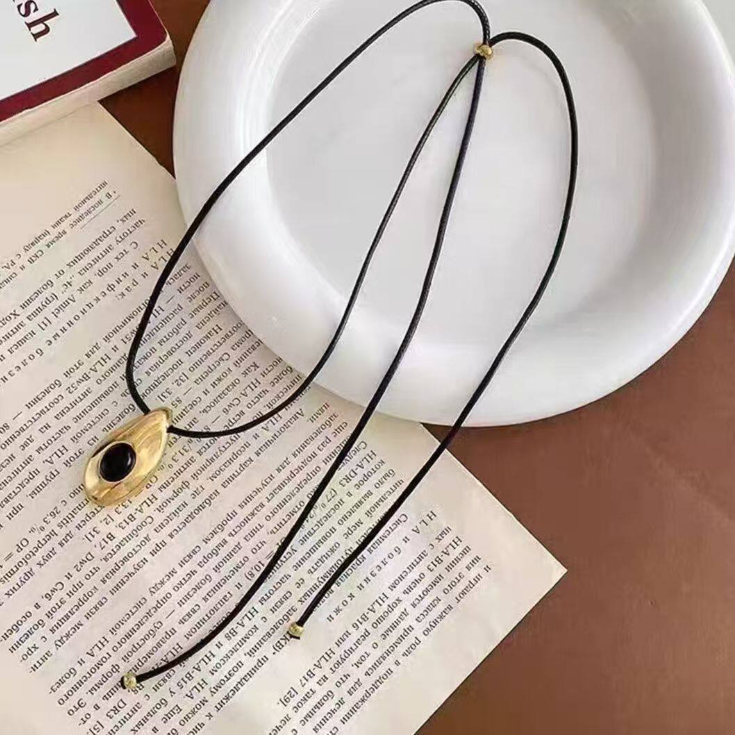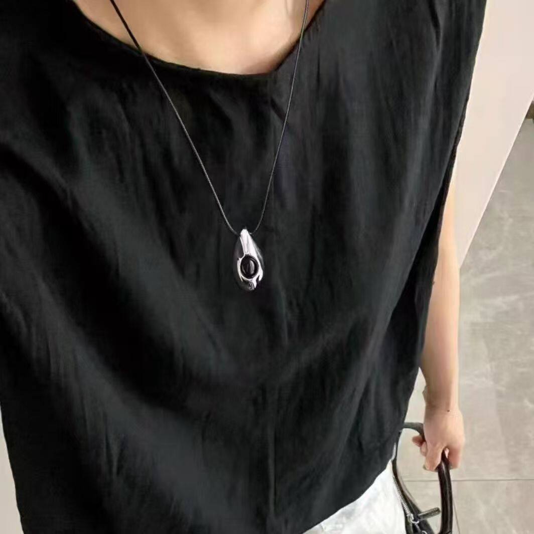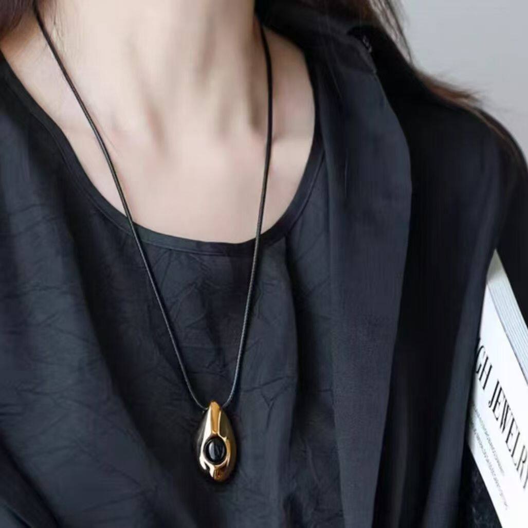 简约水滴吊坠黑绳项链2025新款气质个性小众高级感长款百搭毛衣链
