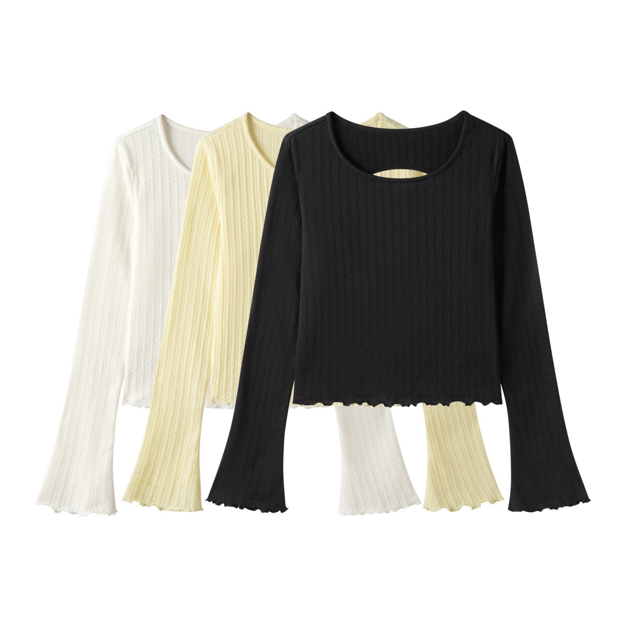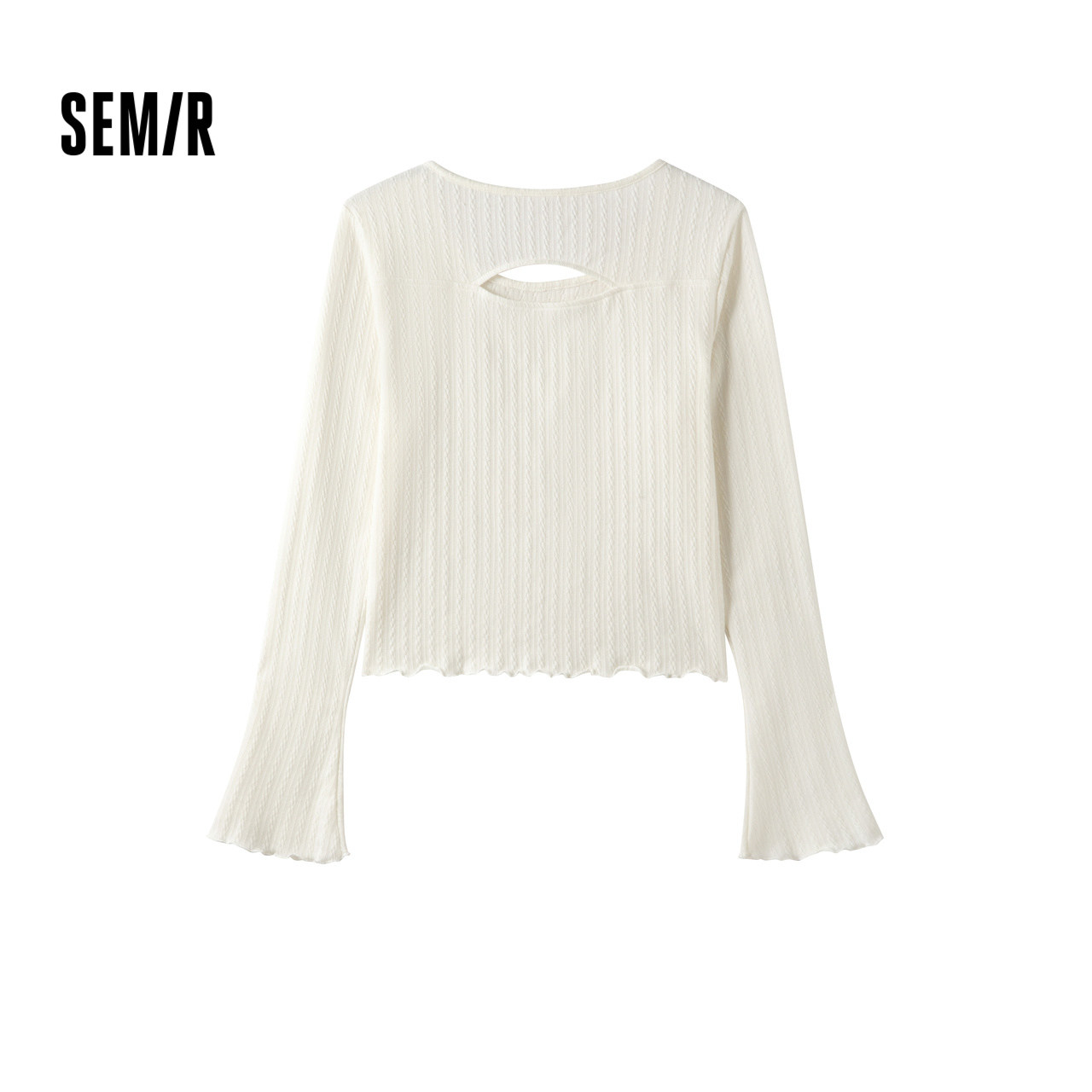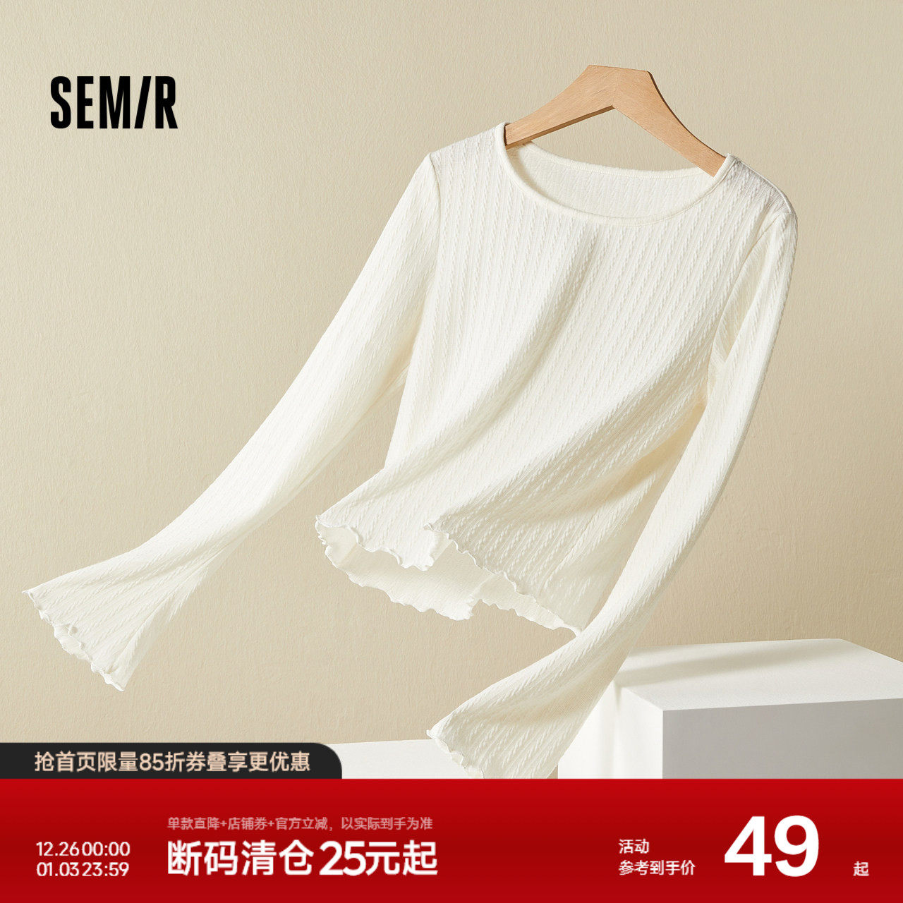 森马内衣女镂空设计感打底衫修身显瘦内搭纯色百搭上衣甜美木耳边