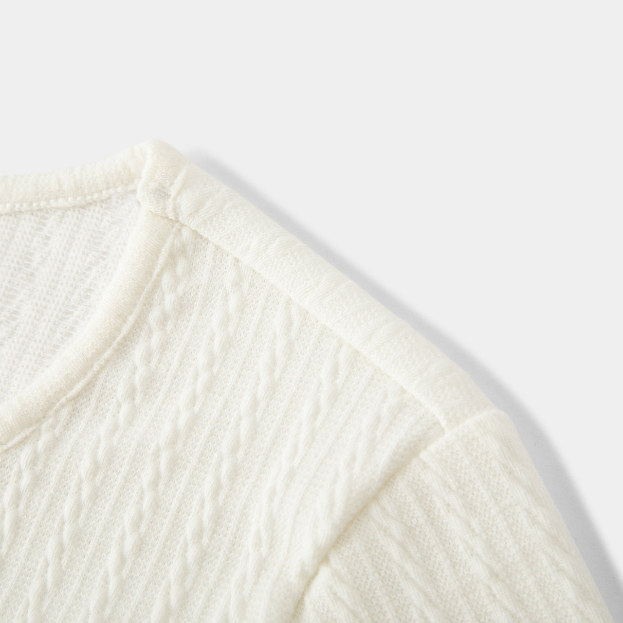 蕉下亨利衫女长袖T恤v领秋冬修身保暖低领打底衫半开领白色上衣