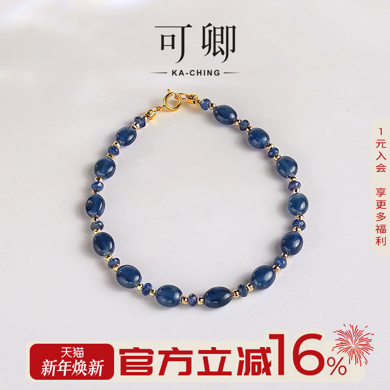 可卿珠宝 蓝蕊 素面蓝宝石手链天正品然宝石手链首饰18k礼品女